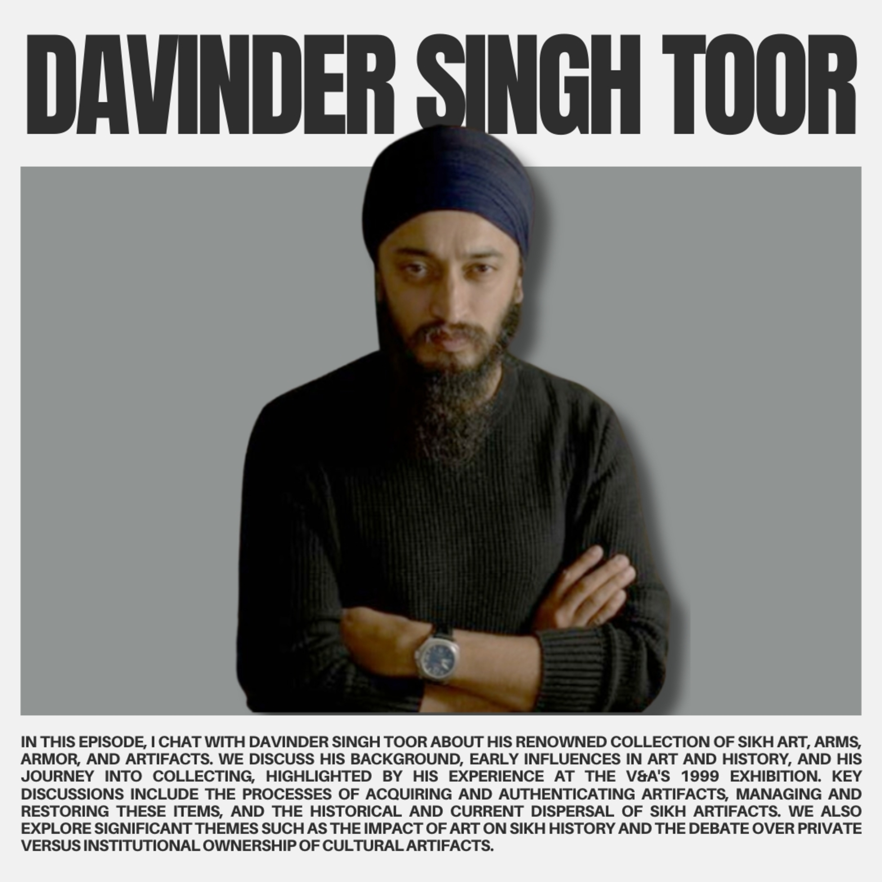 In this episode of the ਸੋਚ podcast I get to talk to Davinder Singh Toor, who he has put together one of the finest collections of Sikh art, arms, armour and rare artefacts from all over the world.