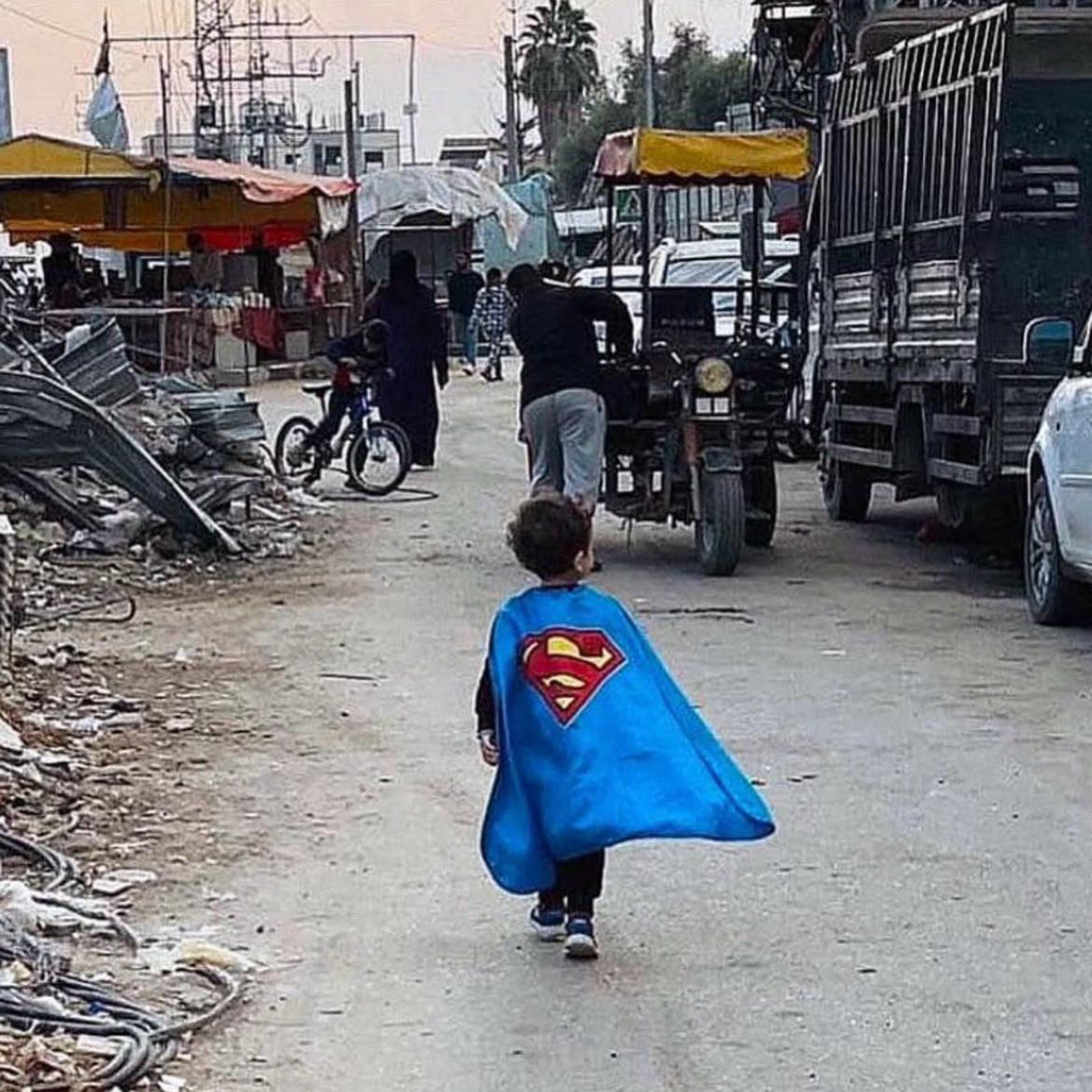 La fotografía de un niño palestino caminando por una calle de Gaza con capa de Superman, refleja no solo la esperanza que encarna el héroe, sino también la forma en que algunos personajes de la cultura popular llegan a convertirse en mitos contemporáneos. Hablemos sobre el comic y su impacto político y cultural