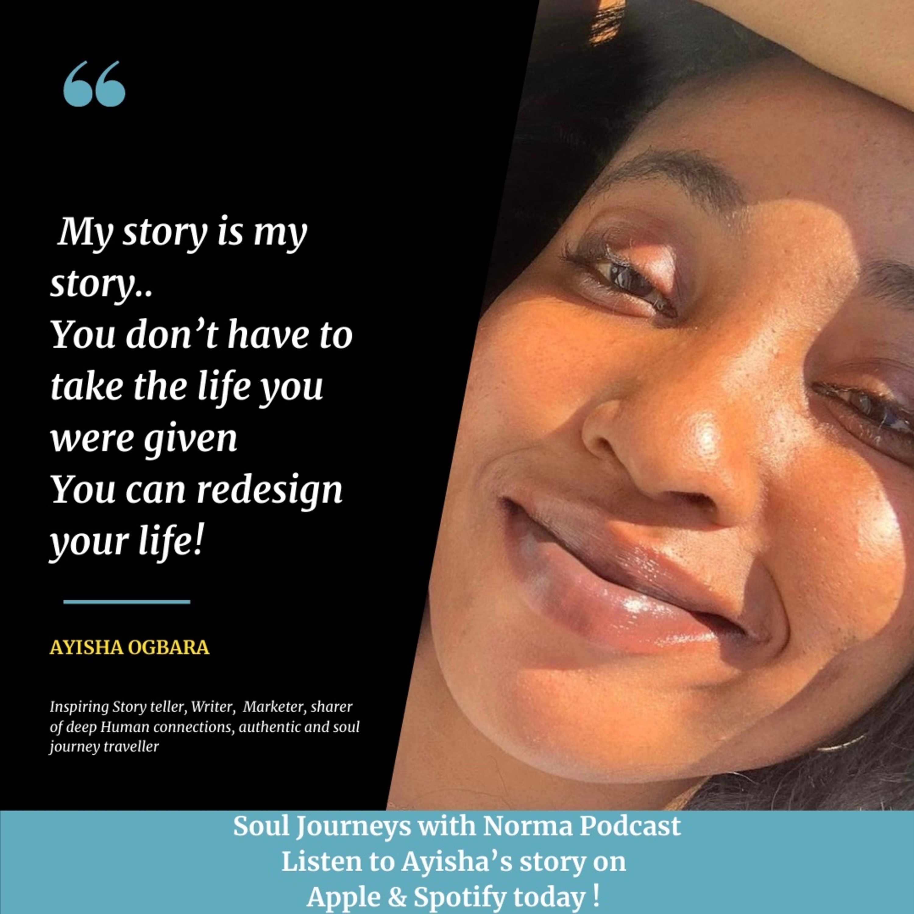 This interview is moving, profound and if you take the lessons from this soul journey they are simple and life altering. Ayisha has fire π₯ like no other but one she has risen from and has transformed with her deep understanding of herself. She is the author of her own life redesigning it for what she wants to achieve and who she brings with her! Please follow her on LinkedIn : https://www.linkedin.com/in/ayisha-ogbara in particular for her future writing and Coaching plans. Enjoy the Episode and let us know what you all think! ππ»ππΎππΎππ»