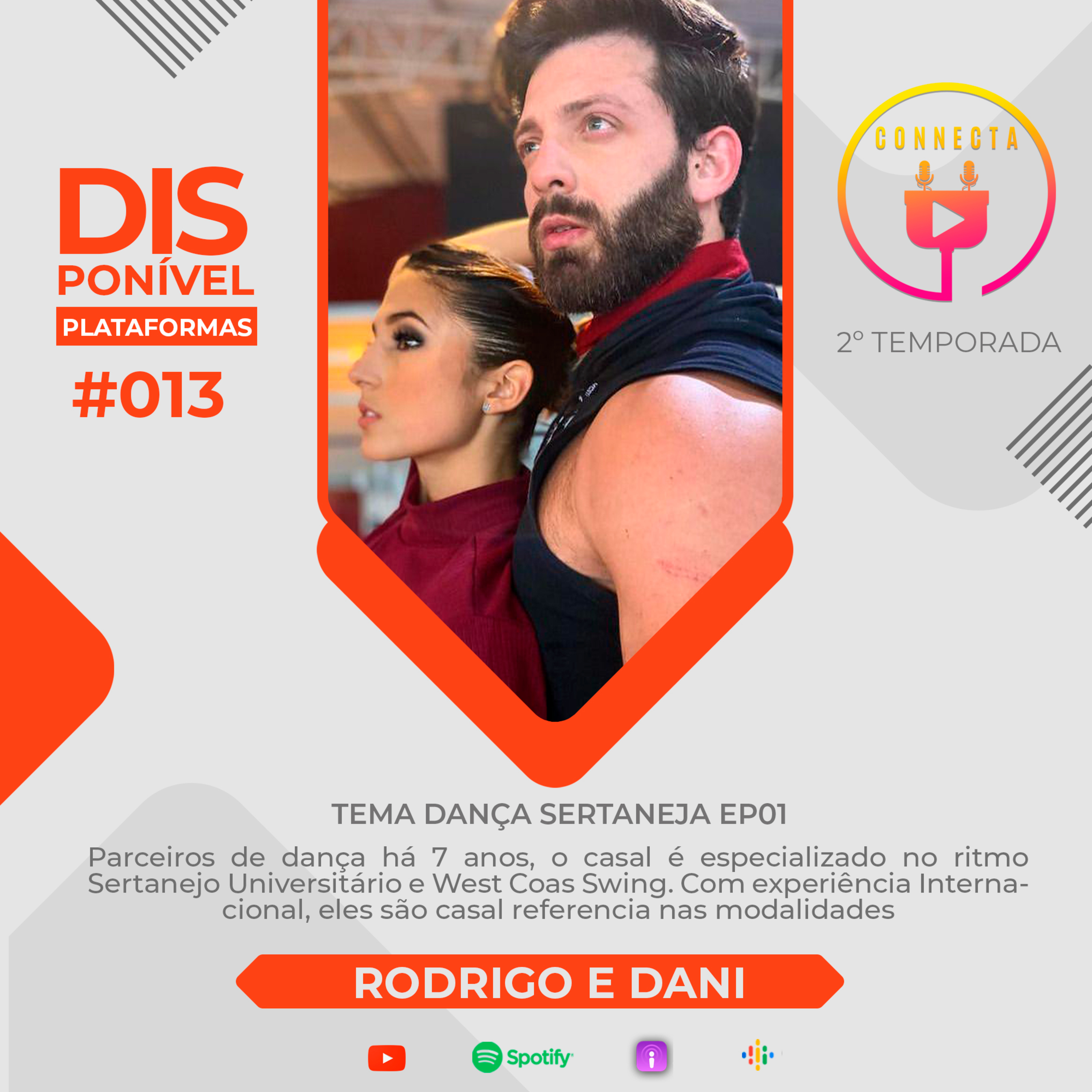 Dando inicio a segunda temporada do Connecta, no formato "TEMAS" o primeiro escolhido foi; Dança Sertaneja Universitária. O tema terá um total de 5 episódios. E o convidado do primeiro episódio são os já internacionais Rodrigo Thomaz e Dani Duram. O casal que teve ínicio no movimento sertanejo conta sobre histórias do começo de carreira, falaram sobre seu estilo de dança e a repercurssão que causou inicialmente, rivalidade com outros dançarinos, a polemica dança de um dos seus alunos... e muito mais. Preparem-se para a nova temporada do Connecta. Ta imperdível.