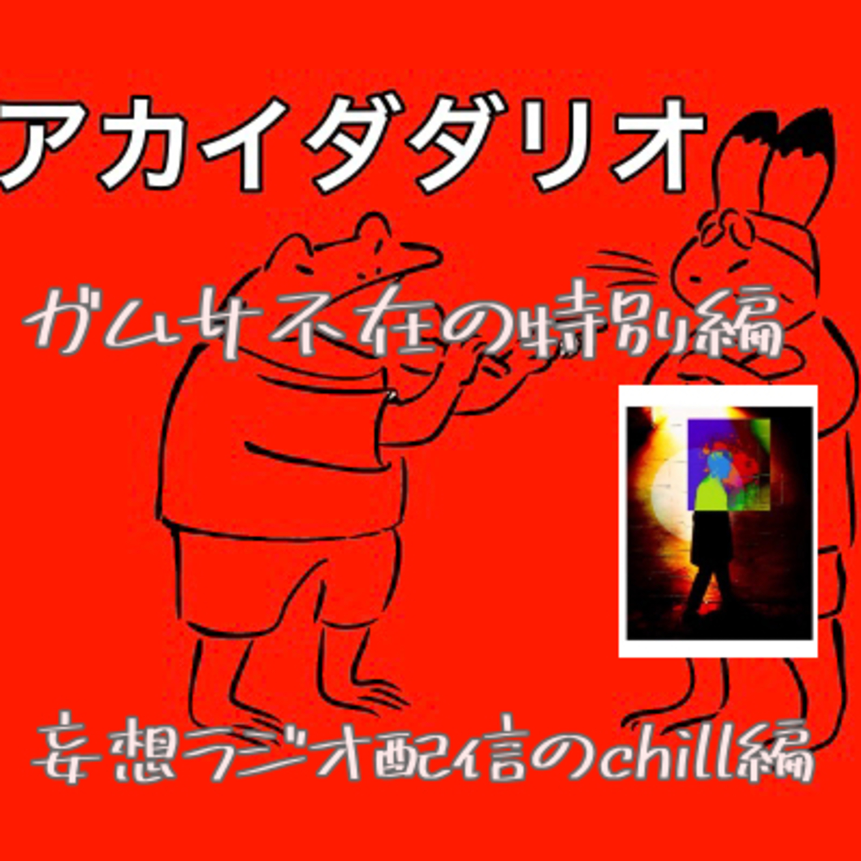 ガムサ不在の特別編。某配信アプリtin can にて不定期で配信しているchill さんをお迎えしてのアカイダダリオ。実際に配信している、妄想ラジオを再現。