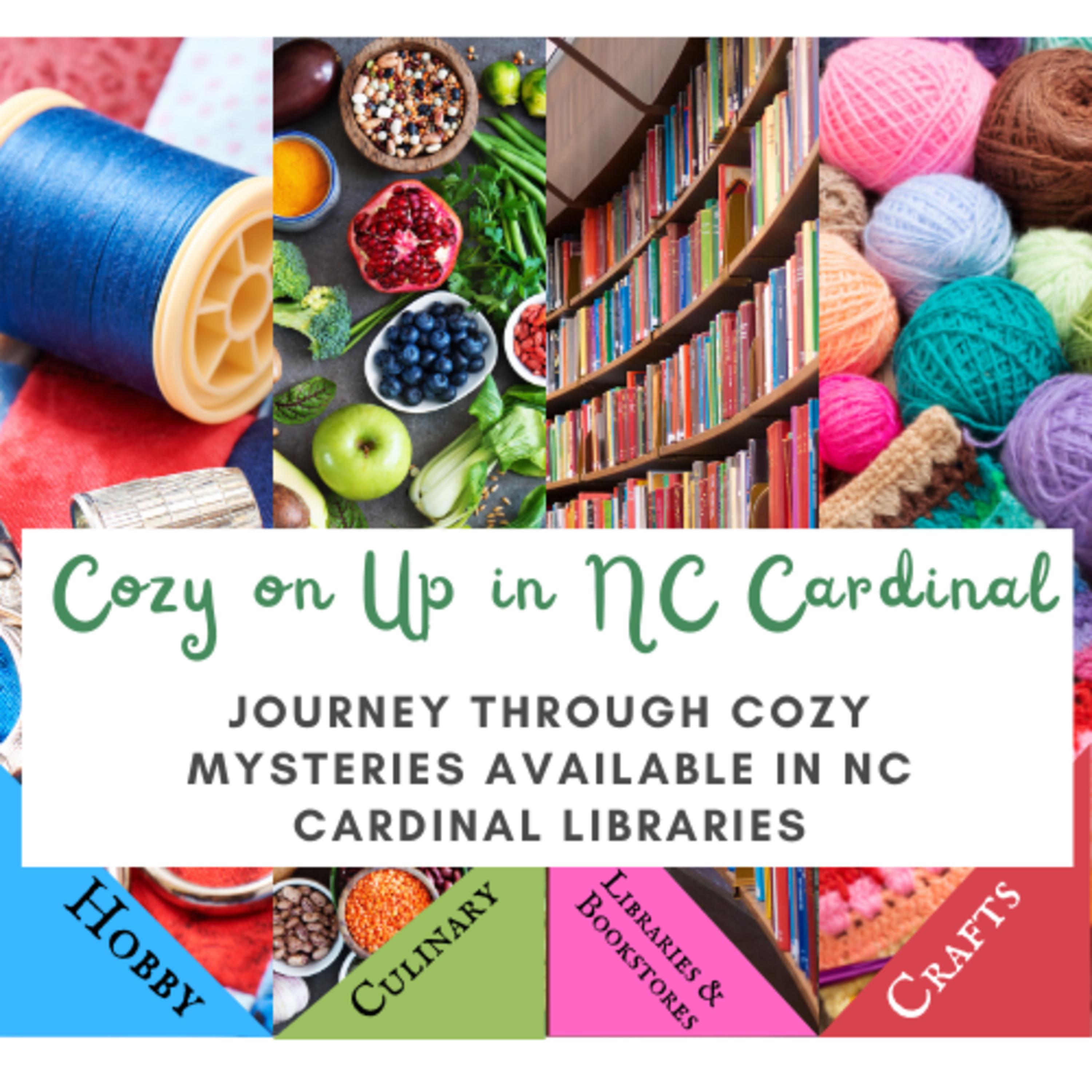Welcome to the next episode of Cozy on up in NC Cardinal! Each episode is a journey through a Cozy Mystery theme or author available in NC Cardinal.