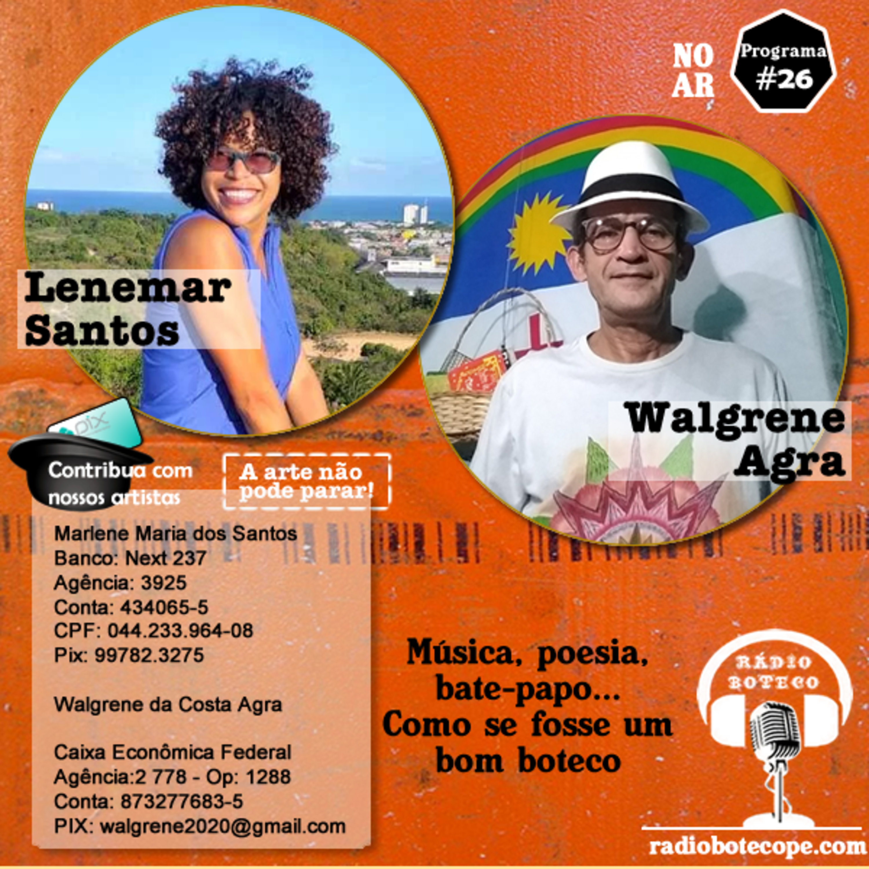 Nesta edição da Rádio Boteco, temos o encontro da poesia e a música representados por Lenemar Santos e Walgrene Agra que nos dá o prazer de um bom bate papo.