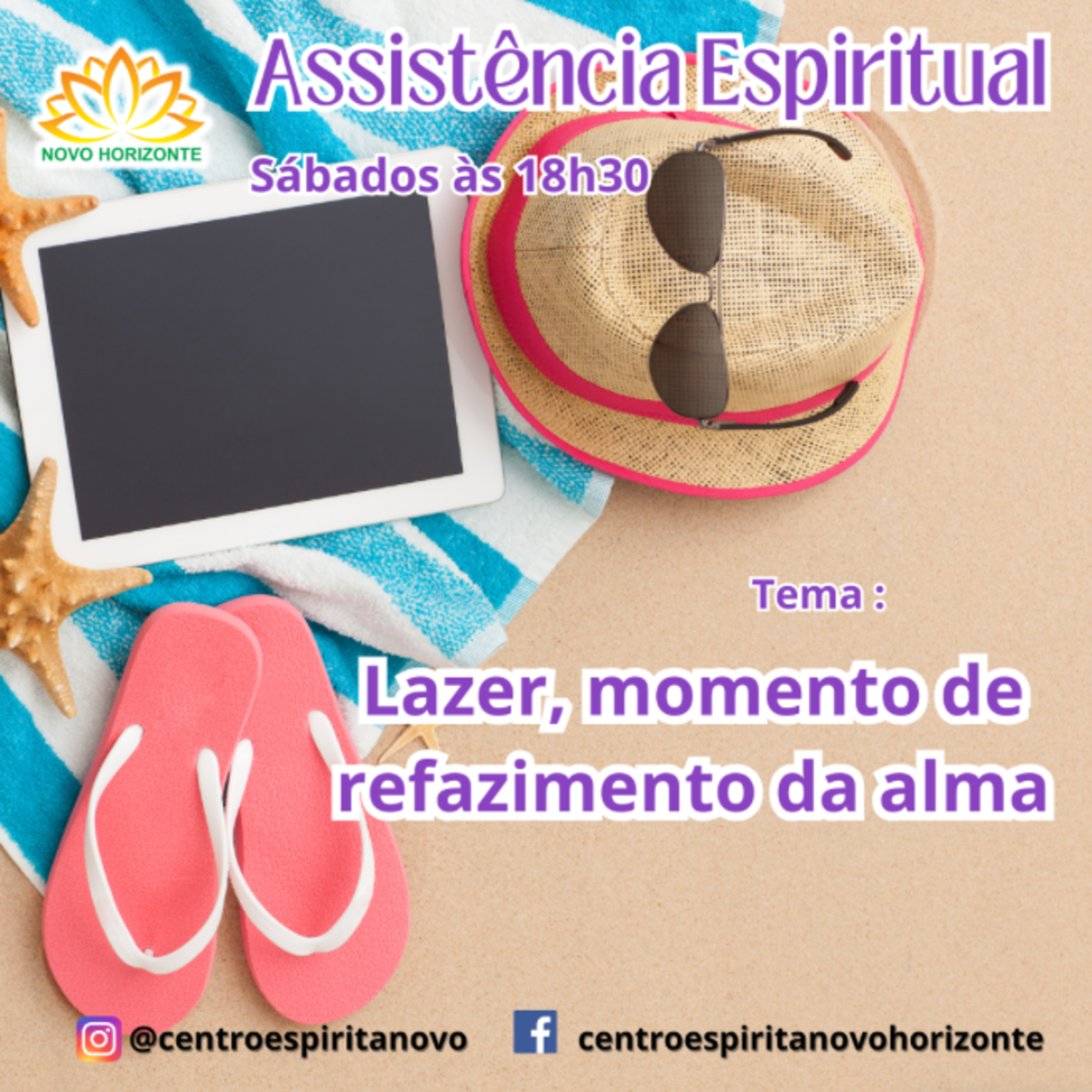 Preleção sobre "Lazer, momento de refazimento da alma" feita no Centro Espírita Novo Horizonte, em 30 de novembro de 2024, por Adriana Aires.