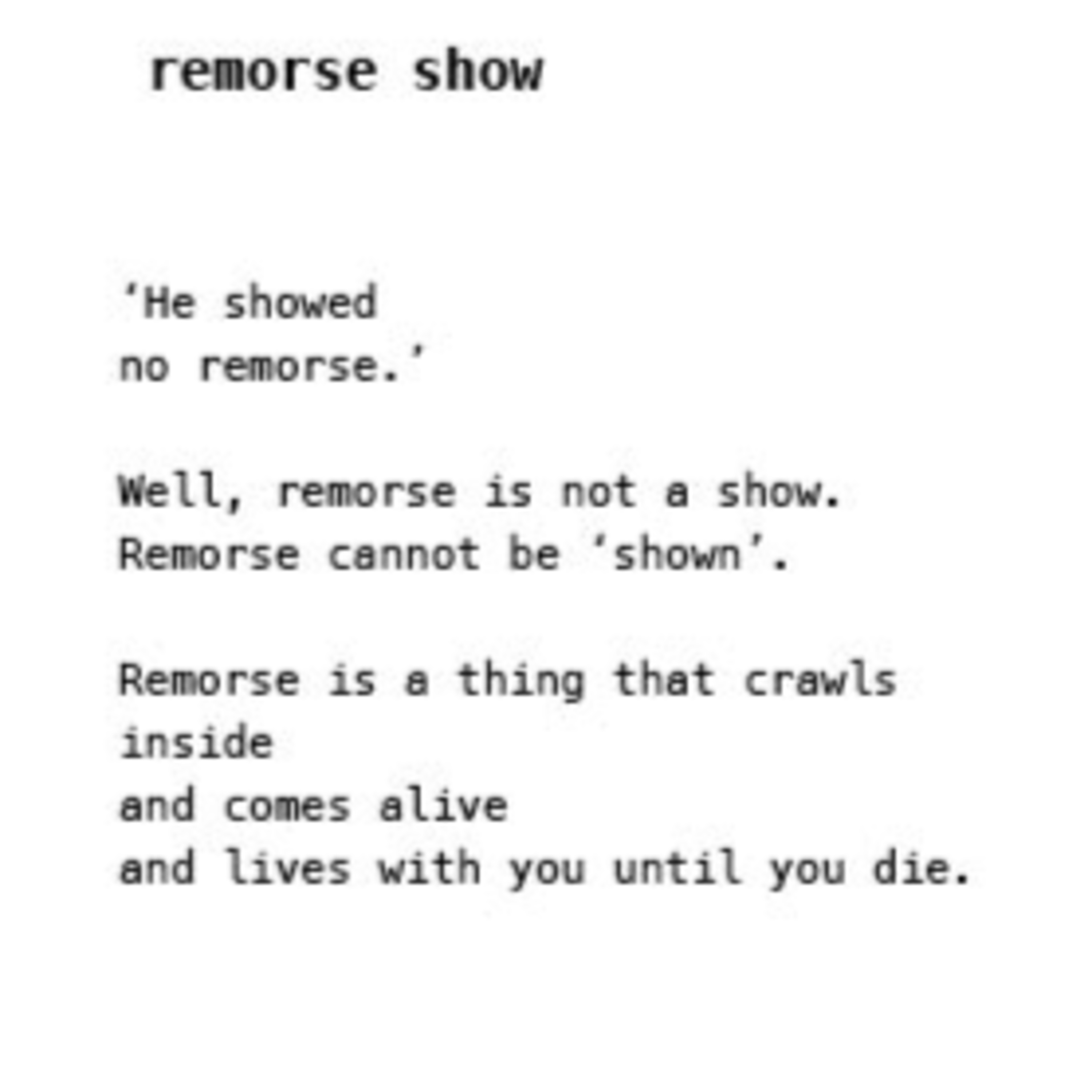 Remorse Show, a poem written and read by Alex Ternowetsky