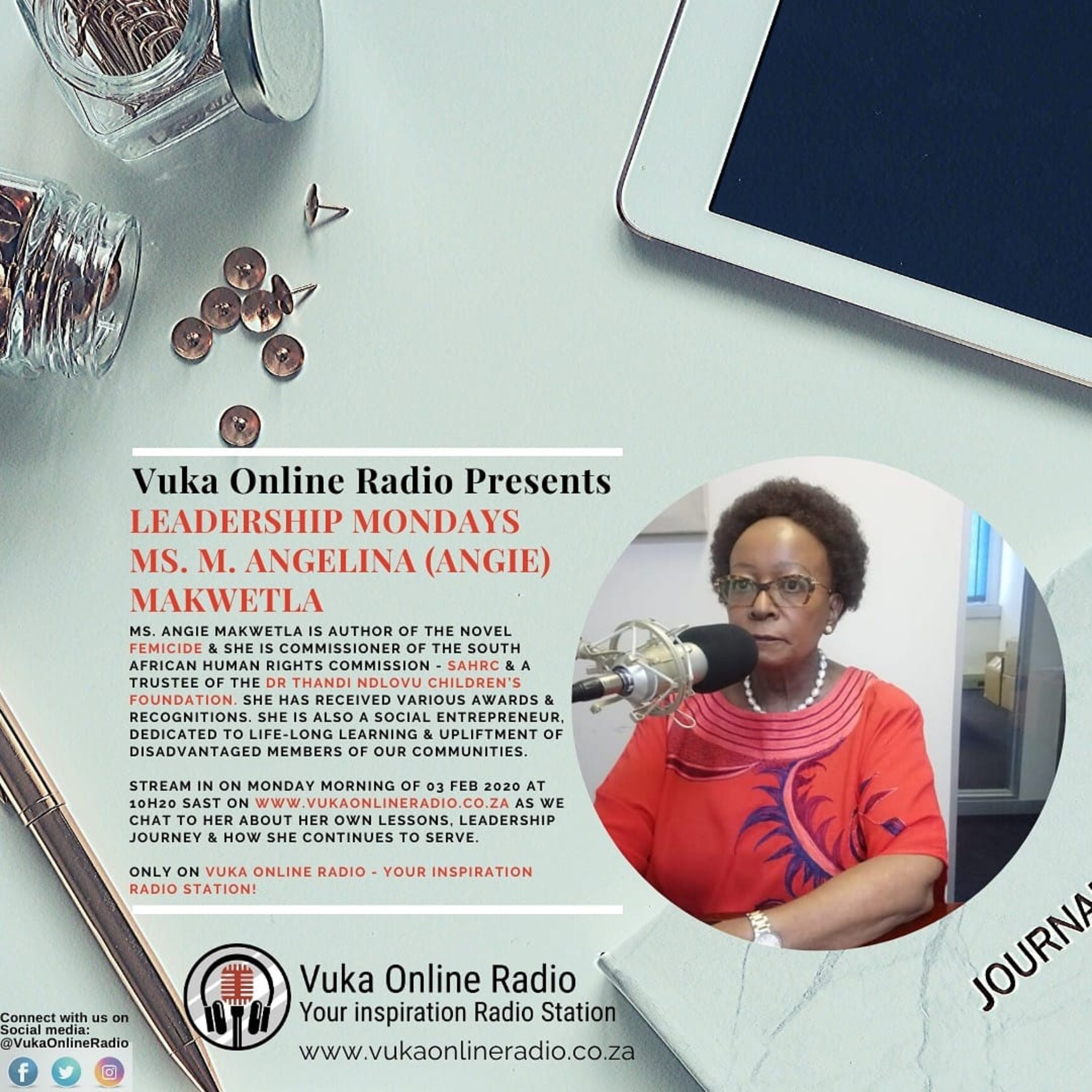 Legendary social activist, Entrepreneur and commissioner of human rights *Mme Angie Makwetla speaks to Dr Mo on Leadership Mondays on her leadership lessons, her thoughts on Femicide and her current projects!
