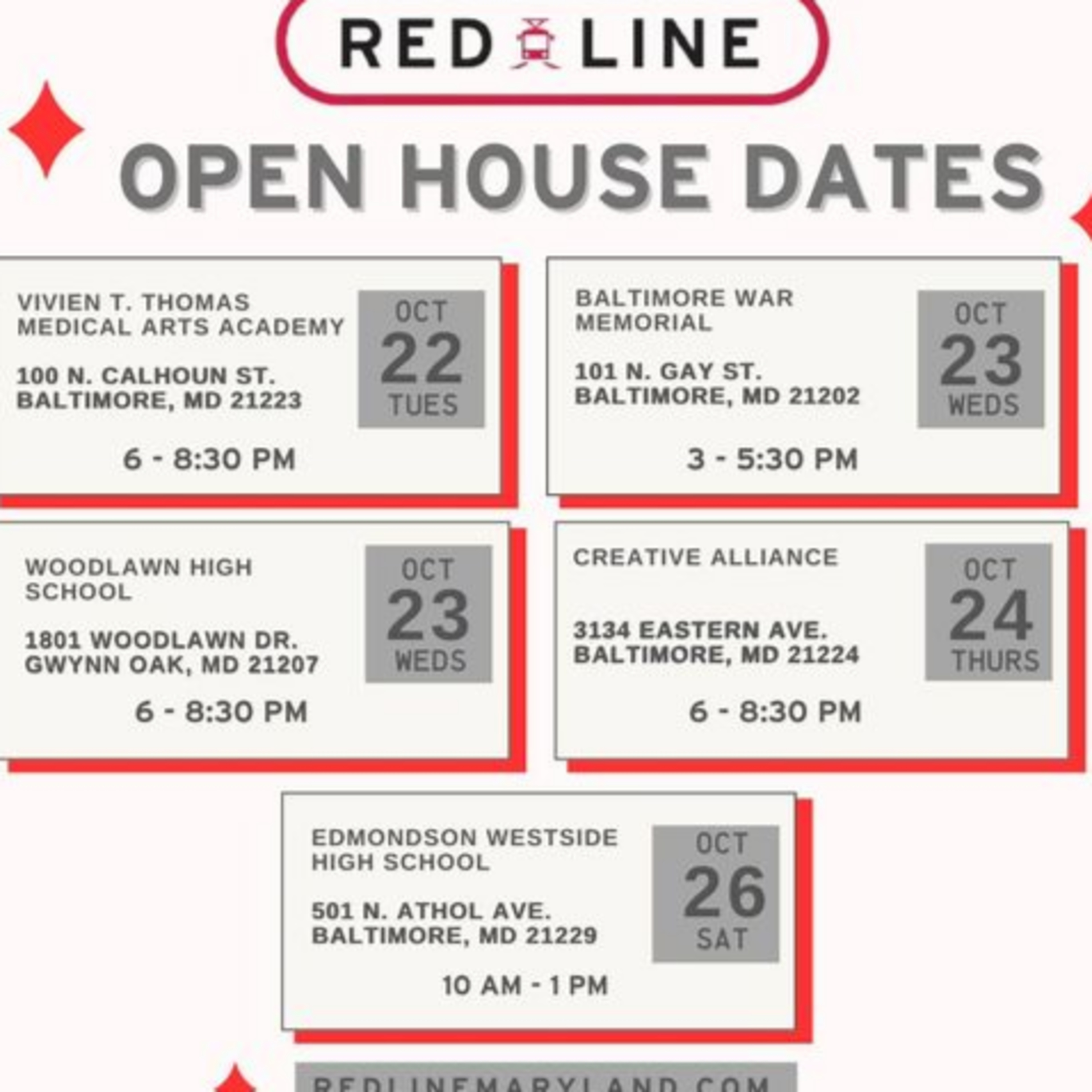Check out the notes below for more information about the Red Line and the upcoming open houses!