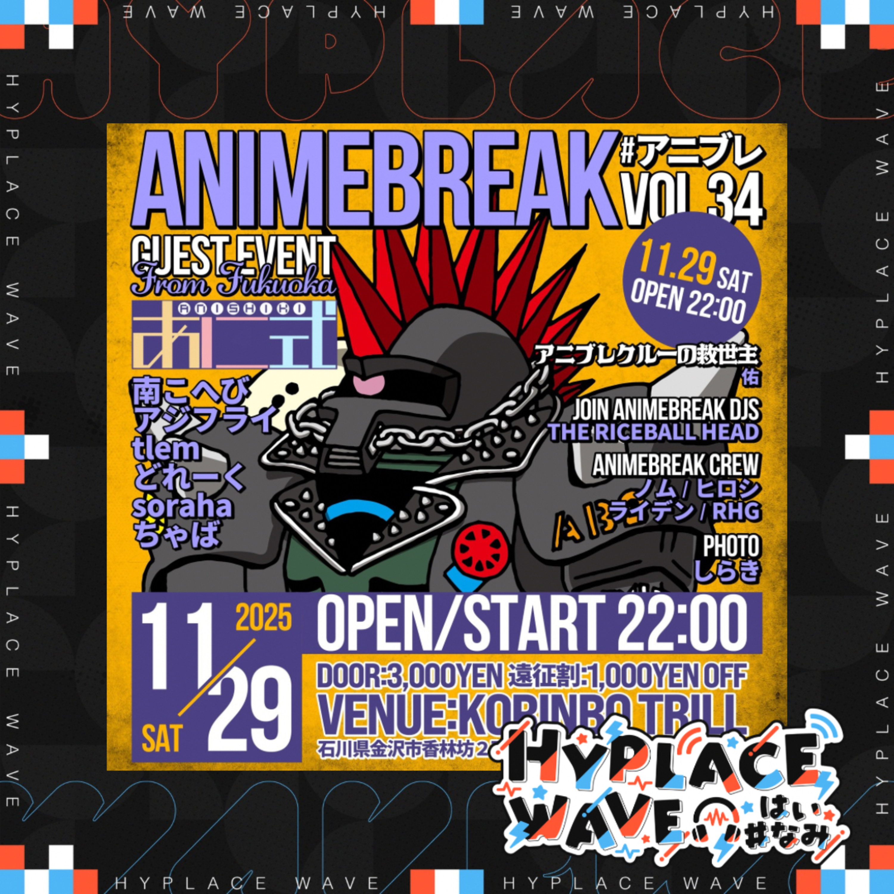 GUEST EVENT:あに式(from福岡)→南へこび/アジフライ/tlem/どれーく/soraha/ちゃば