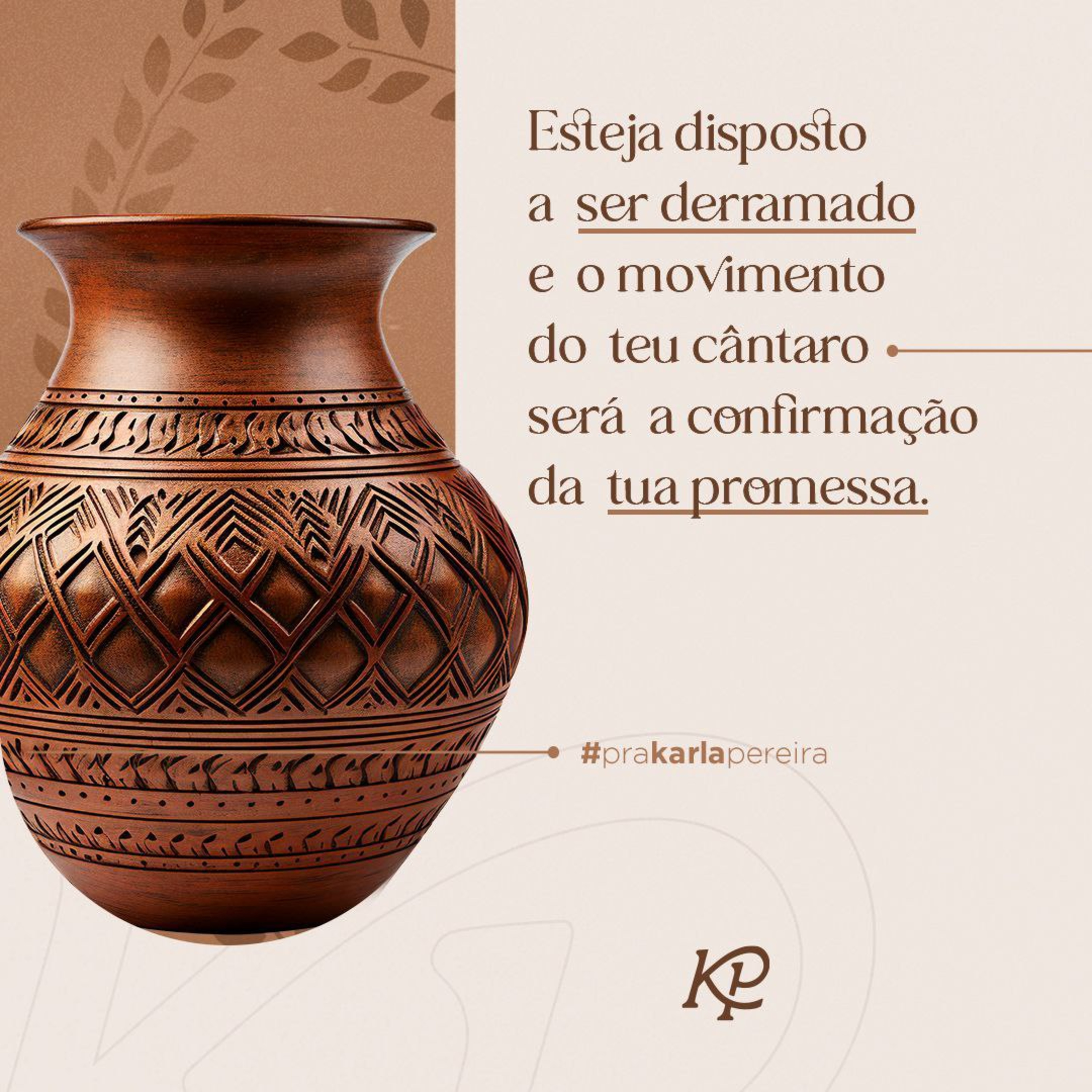 Abraão desejava escolher uma esposa para seu filho. Para isso, fez seu servo de confiança seguir para a cidade de Naor, seu irmão, e de lá trazer uma escolhida. O servo seguiu e junto a fonte, ele aguardava uma donzela que descesse e desse água tanto para ele como para os seus camelos. A fonte determinaria o destino e o cântaro definiria a promessa. Você possui uma essência, e quando ela for derramada sobre improváveis o céu te encontrará. Você não é achado pelas águas que retém, mas pelas águas que libera. Teu cântaro carrega água, mas o enviado do Pai está esperando que no derramar das tuas águas você sacie a sede daqueles que caminham pelo deserto. O teu servir te habilita para o propósito. Quando você se doa, o céu te separa. Rebeca deu água para o servo e para os camelos sem esperar recompensa. Ela não sabia que nos camelos havia riquezas. Quando você oferta das suas águas e suas mãos trabalham por improváveis, os tesouros escondidos são liberados para te abençoar. Camelos podem carregar tesouros que serão acessados apenas pelo teu servir. Rebeca fez o que nenhuma donzela fez e Isaque a amou. Se você deseja atrair a atenção dos céus libere das suas águas, vire o seu cântaro e a fonte que te cura curará o outro. Não é sobre fazer, mas é sobre ofertar tudo de si até que tua essência transforme realidades. Esteja disposto a ser derramado e o movimento do teu cântaro será a confirmação da tua promessa.