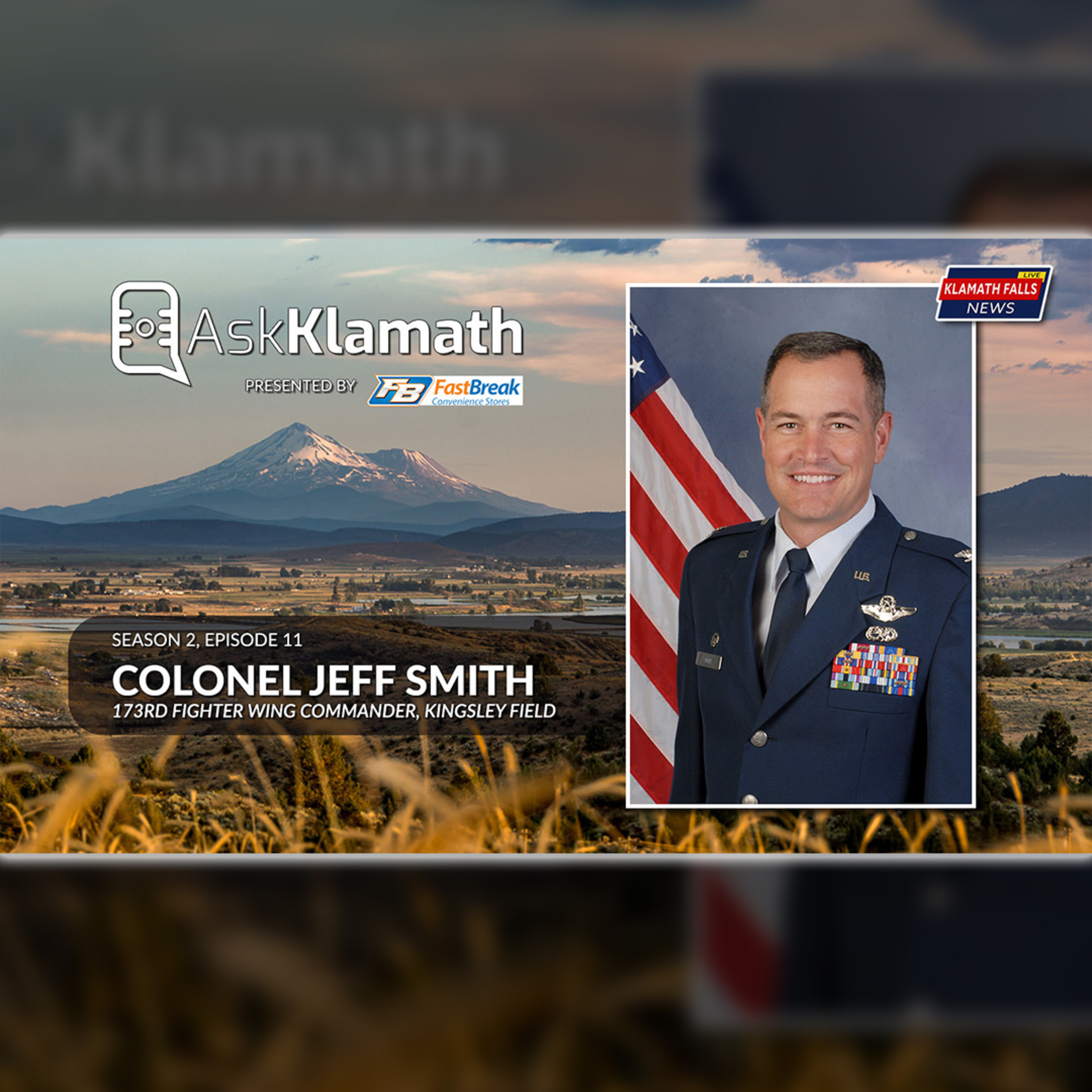 Colonel Jeff Smith is our guest on Season 2, Episode 11 of Ask Klamath. Col. Smith is the commander of the 173rd Fighter Wing at Kingsley Field. In this episode, we chat with Col. Smith about the future of Kingsley Field, the recent visit by Secretary Wilson, and answer your questions live.