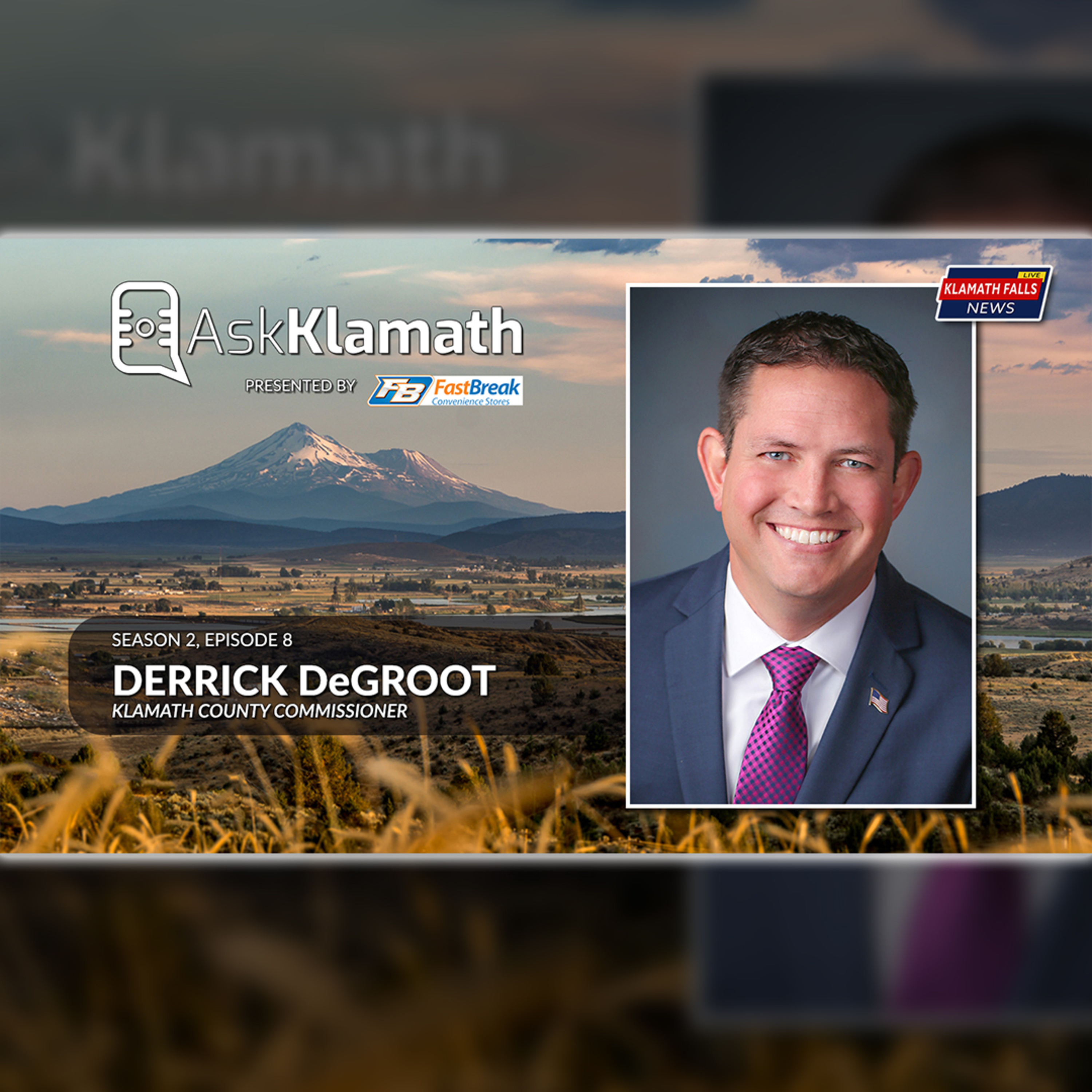 Klamath County Commissioner Derrick DeGroot is our guest on Season 2, Episode 8 of Ask Klamath. In this episode, we chat with Commissioner DeGroot about the latest activities in Klamath County Government and answer your questions live.