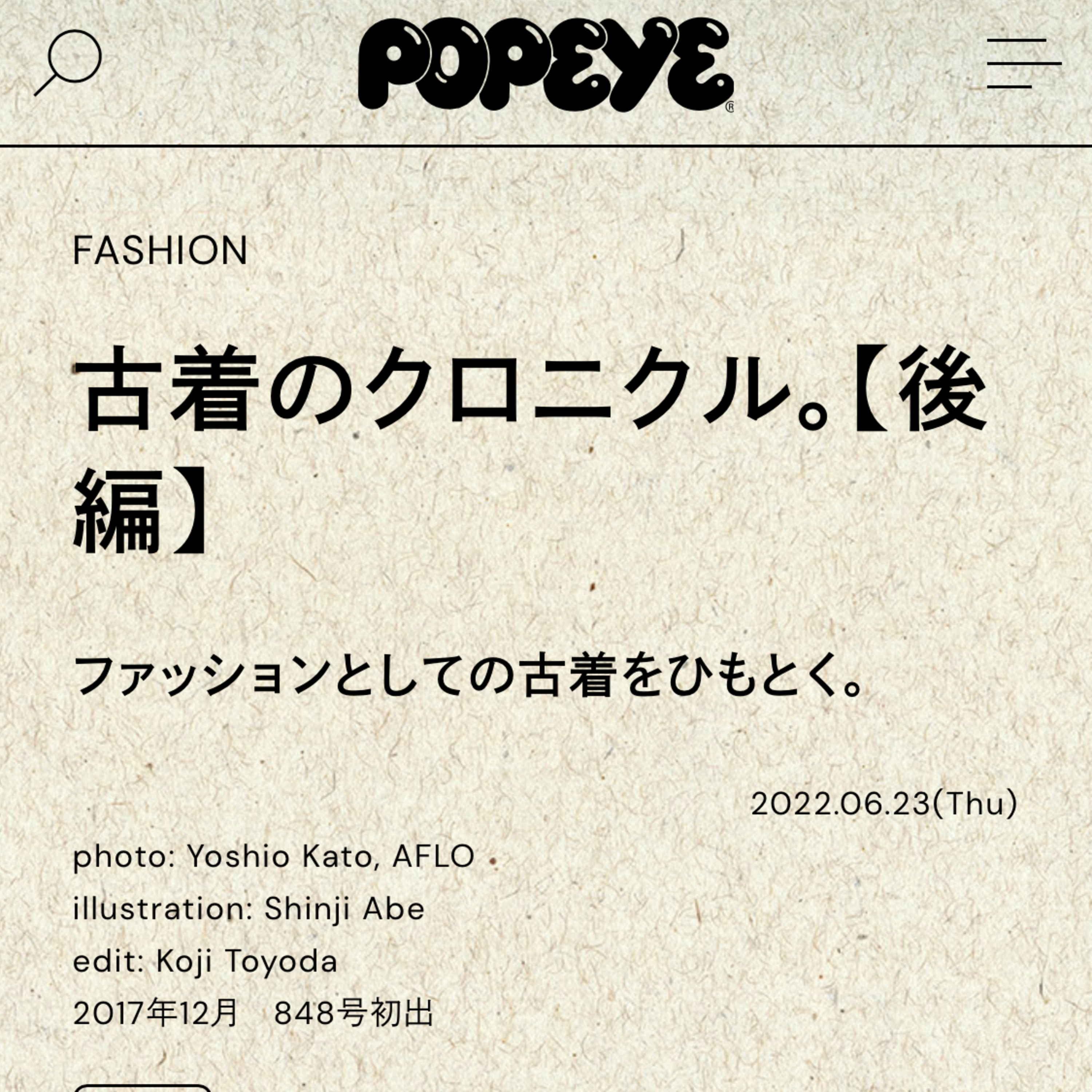 時間が空いてしまいましたが前回に続いてPOPEYEの記事を紹介します。