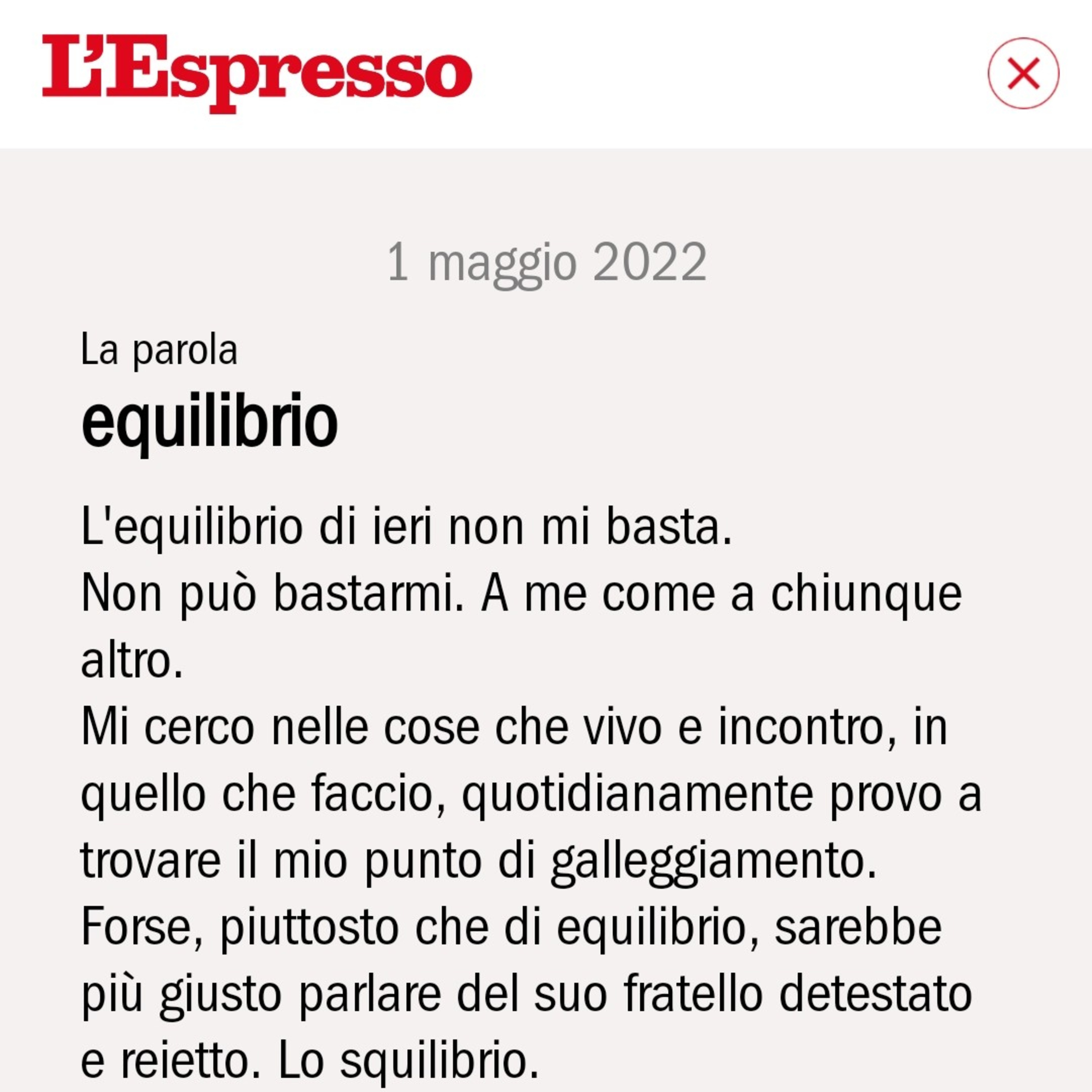 Parola del giorno: Equilibrio