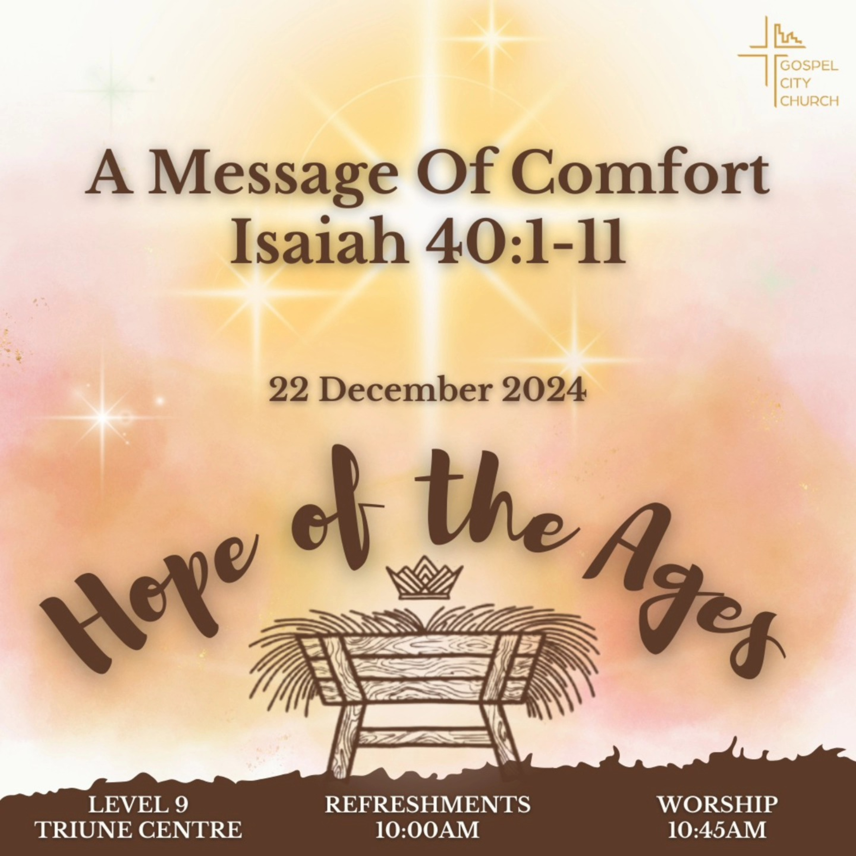 Isaiah 40 brings a message of comfort in the midst of hopelessness, where he talks about God, who has pardoned the sins of His people. God, in the form of flesh, will come to dwell amongst His people and will ultimately bring an end to all troubles brought by sin. The same God whose words are final, reliable and trustworthy. He has never fail and He never will. A God who is almighty and powerful, yet compassionate to His poeple. In a world of ruthless leaders, He befriends outcasts, touches the untouchable, heals the sick, casts out demons, calms the storms, and raises the dead.