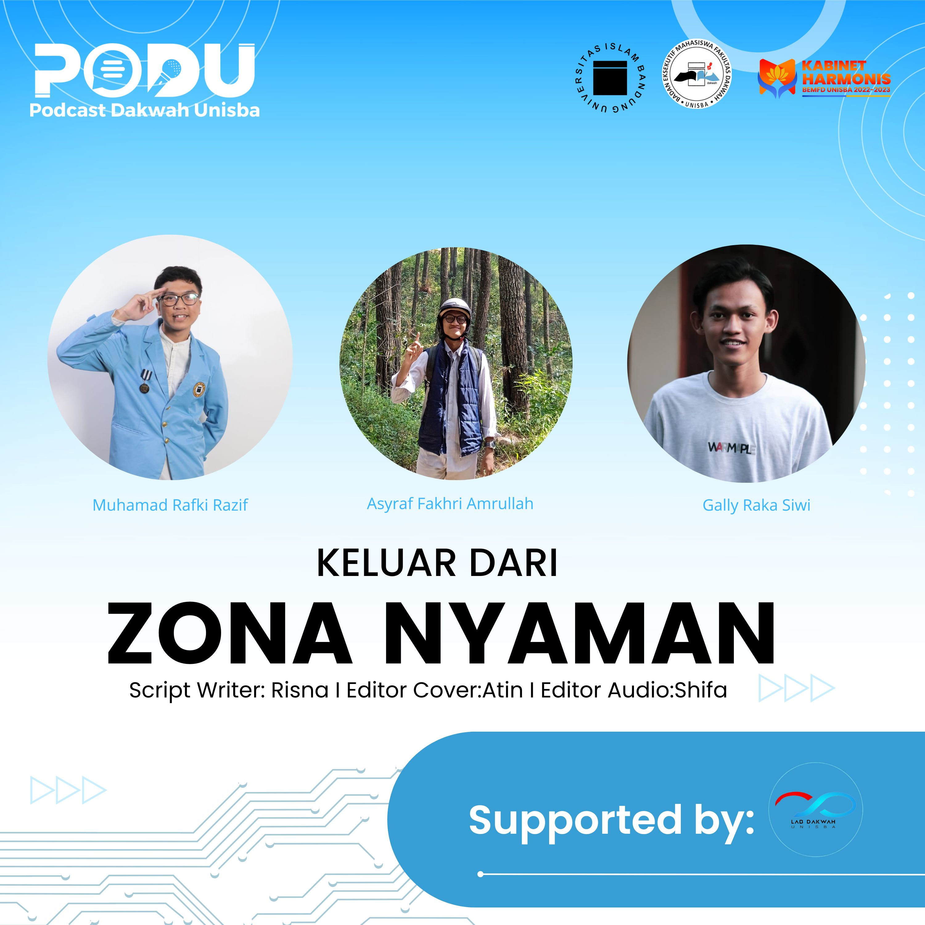 Halo sobat dakwah!👋 Episode PODU kali ini merupakan hal yang menarik nih buat didenger. Untuk kamu para Mahasiswa, di Episode kali ini kita membahas tentang "Keluar dari Zona Nyaman". Kalian masih berada di zona nyaman dan pengen keluar dari hal itu, tapi susah? Nih dengerin podcastnya sampai habis yaaa! Karena pembahasan ini menarik dan bermanfaat banget! Enjoy the Podcast✨