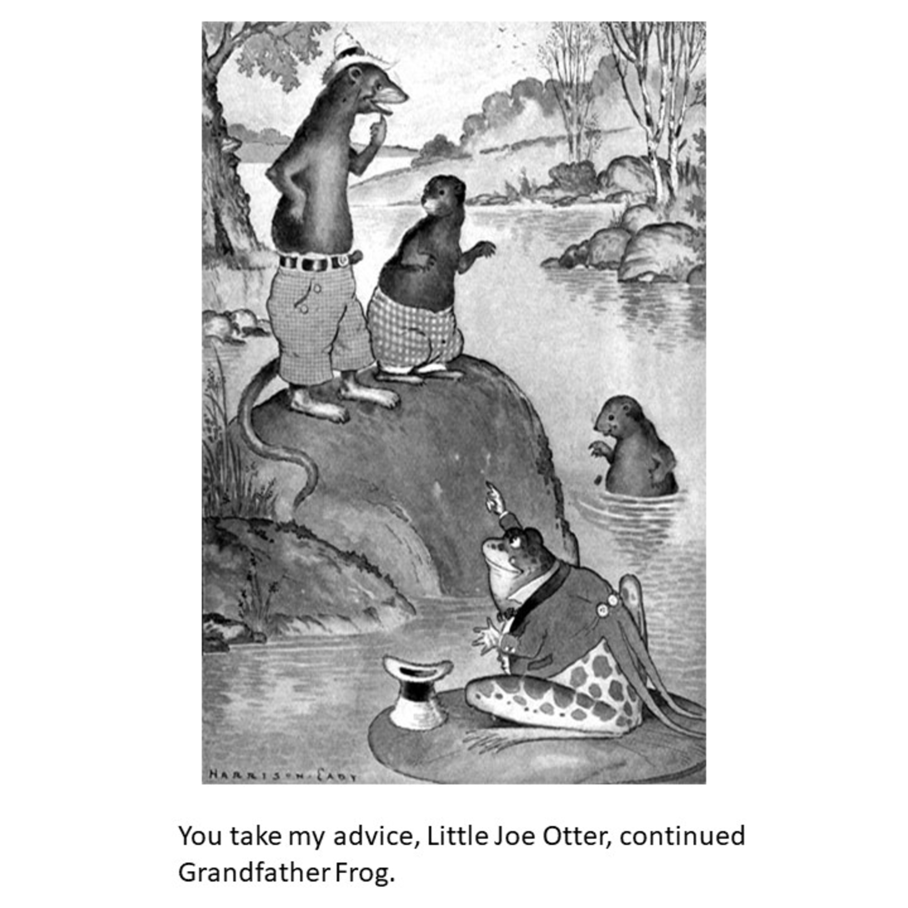 Grandfather Frog schools Billy Mink and Little Joe Otter about ownership