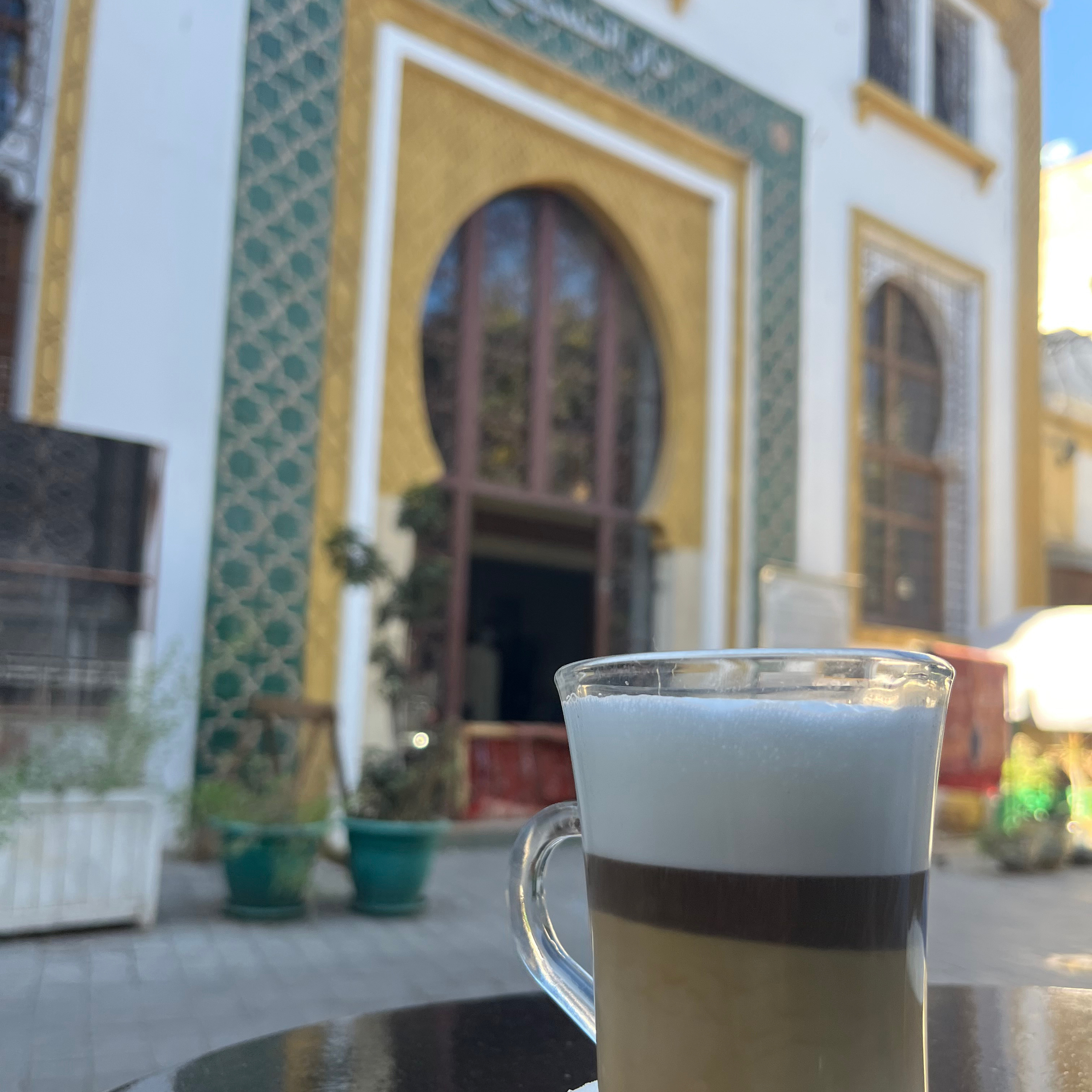 Half espresso, half steamed milk in a clear shot glass — this is nus nus