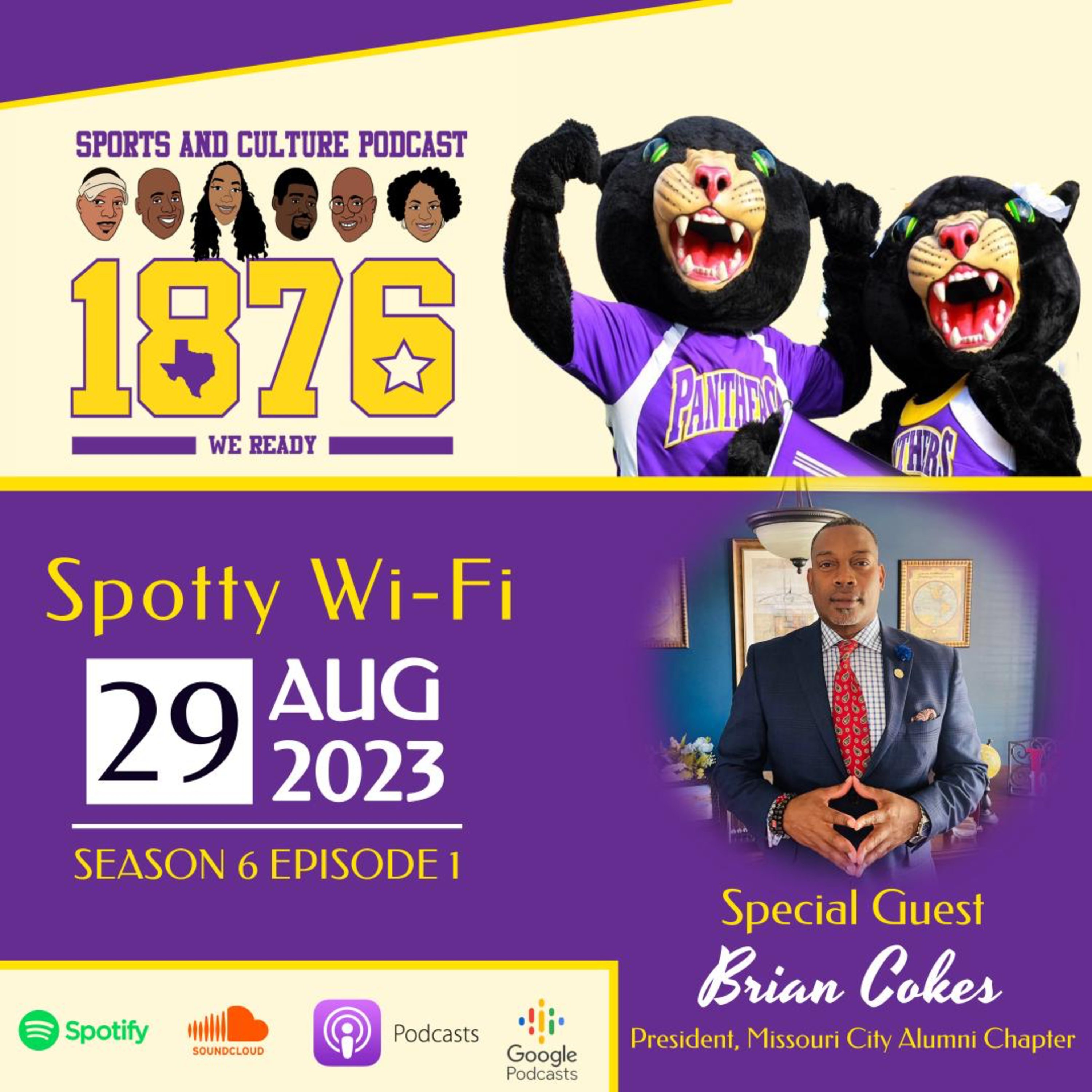 The 1876 Crew is finally back after a long off-season and is shaking off the rust. Al Williams, Joe Clay aka "J.Cleazy", Roland "Ro" Austin, and the lovely Ms. Shaunetta Hesikell are here to kick off Season 6. The crew discusses the hiring of the new PVAMU President and Athletic Director, Tomikia LeGrande and Anton Goff. They also talk what's new in football, the band, and sit down with the new Alumni Missouri City Chapter President, Brian Cokes.