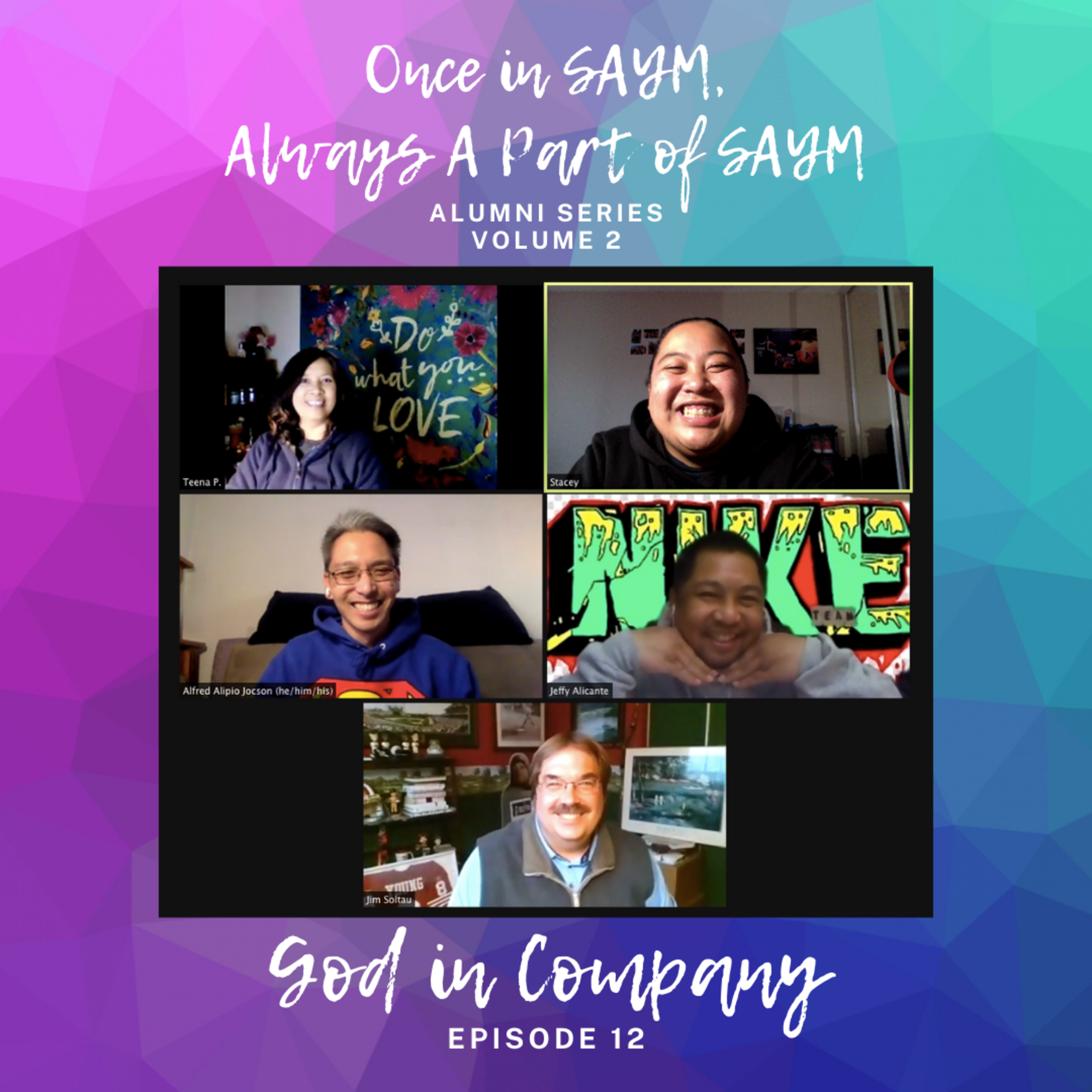 In this episode, Jim and Stacey are joined by Jeffy Alicante, Teena Posas, and Alfred Alipio-Jocson. Our three guests were a part of the first peer ministry group and a part of the early years of the Youth Ministry Program. We listen to their stories, experiences, and how being a part of the program made an impact in their lives