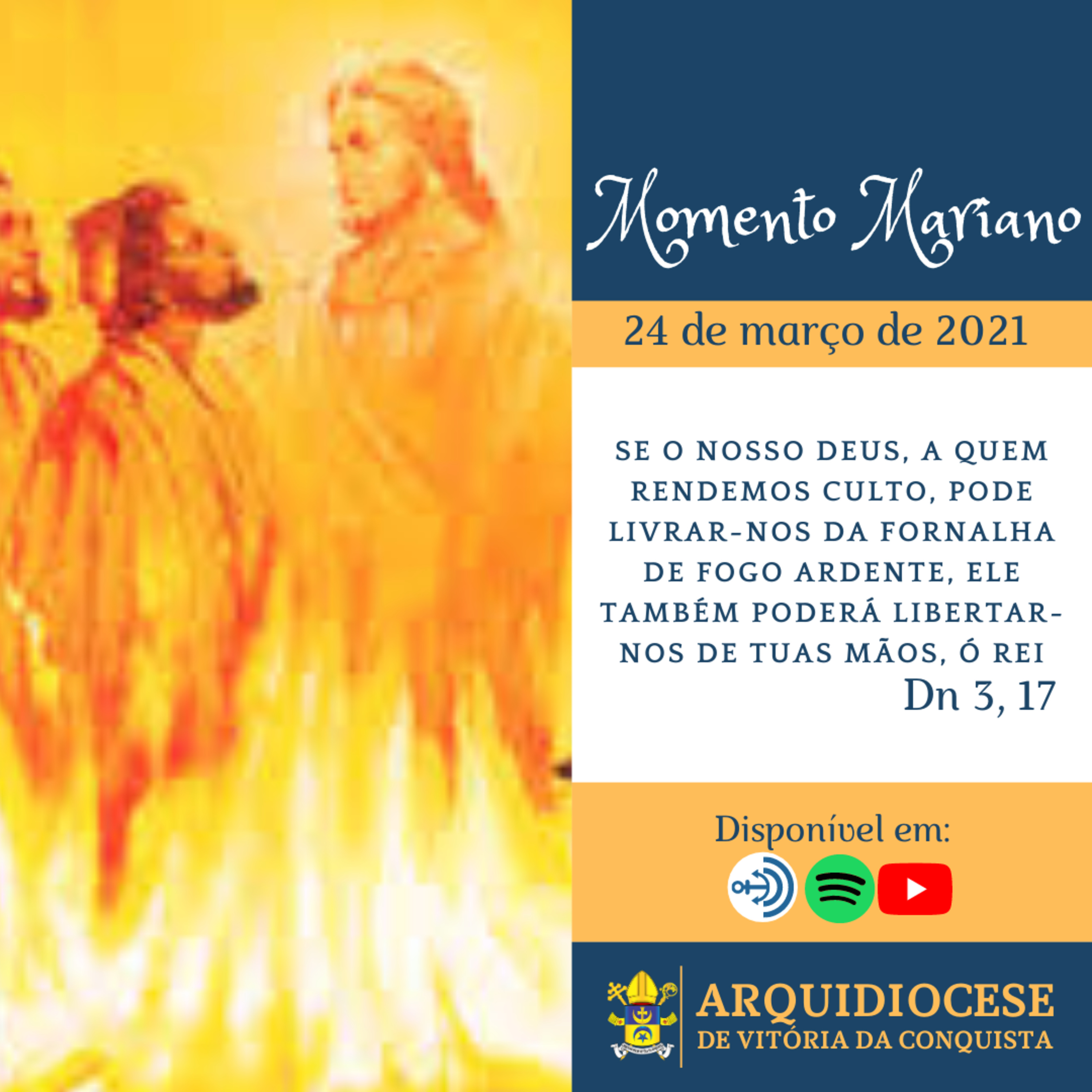 No Momento Mariano dessa quarta-feira, 24 de março, meditamos a 1ª leitura do Livro de Daniel, e à proteção de Deus, ante a fornalha de fogo ardente, acompanhe: Youtube: https://youtu.be/Ka63Yo-o3J4 Anchor: https://anchor.fm/dashboard/episodes Spotify: https://cutt.ly/bhKJa8t