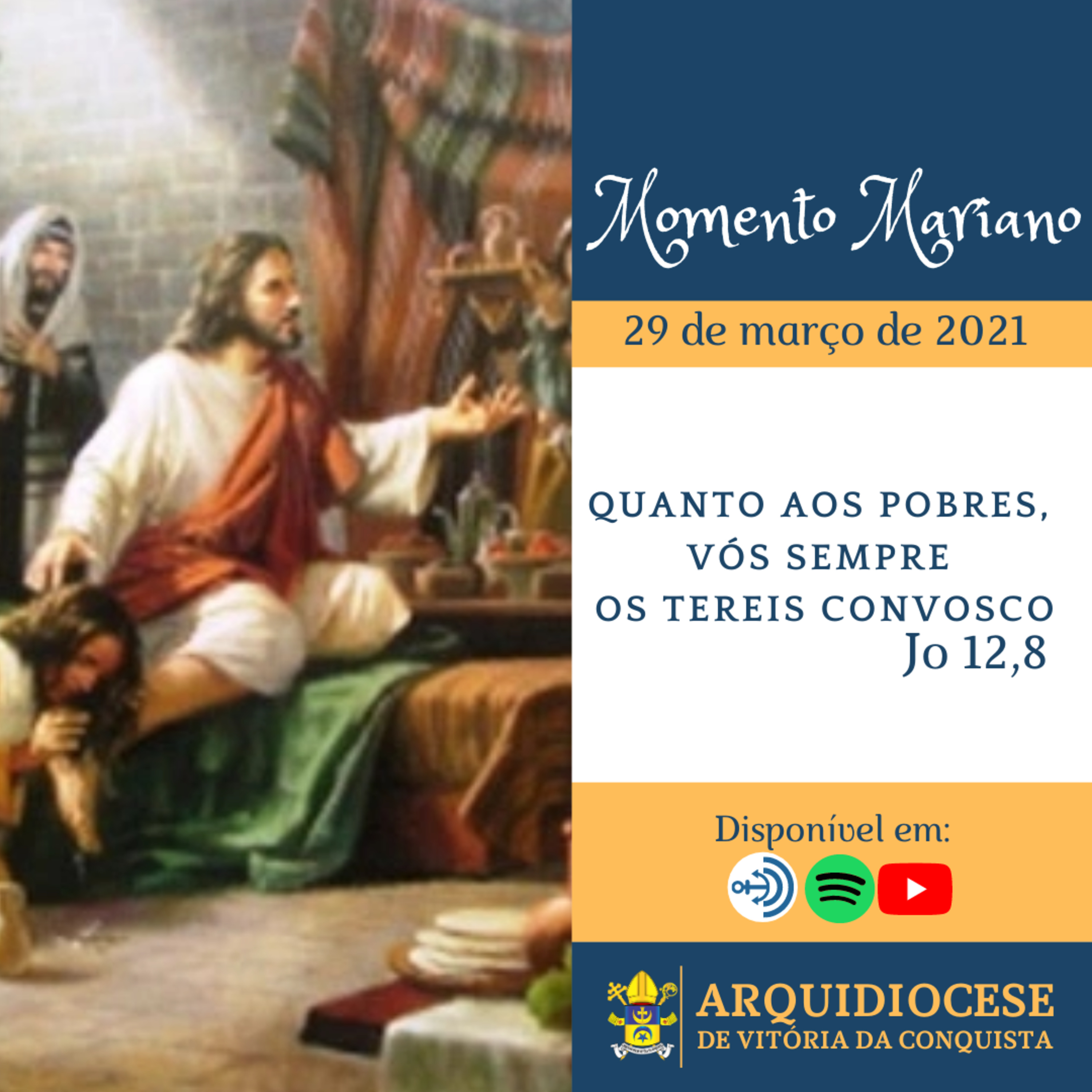 No Momento Mariano dessa Segunda-feira Santa, meditamos a caminhada de Jesus para a sua morte e à memória de que os pobres sempre existirão e de que nos pobres, o encontraremos, acompanhe: