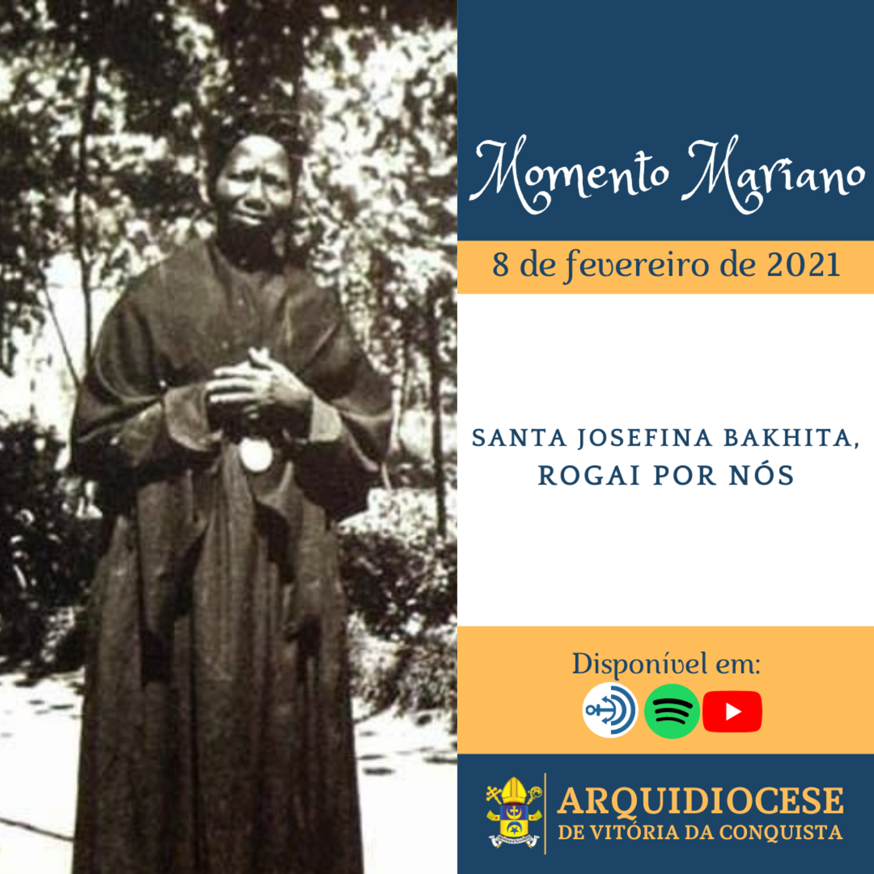 No Momento Mariano dessa segunda-feira, 8 de fevereiro, meditamos a vida de Santa Josefina Bakhita, a primeira santa africana, que passou por diversos tormentos em sua vida e que, conheceu ao Senhor Jesus, por meio deles.