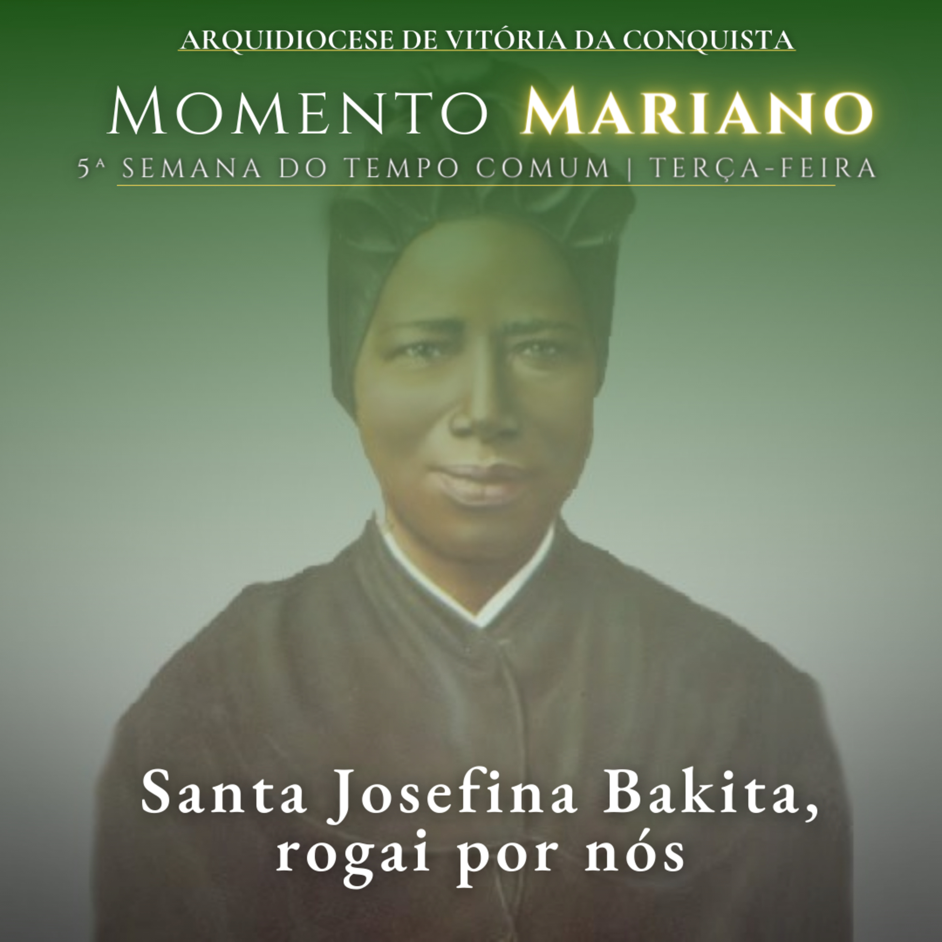 O nome "Bakhita", que significa "afortunada", "sortuda" ou "bem-aventurada", não lhe foi dado ao nascer mas lhe foi atribuído pelos raptores. Foi capturada e vendida por mercadores de escravos negros no mercado de El Obeid e de Cartum ao cônsul da Itália no Sudão, D. Calixto Legnani, que logo lhe deu uma carta de liberdade. No período de escravidão, Bakhita sofreu as humilhações, sofrimento físico, psicológico e moral dos escravos. Veja mais, em: Youtube: https://youtu.be/C0AuINxZ8u8 Anchor: https://anchor.fm/dashboard/episodes