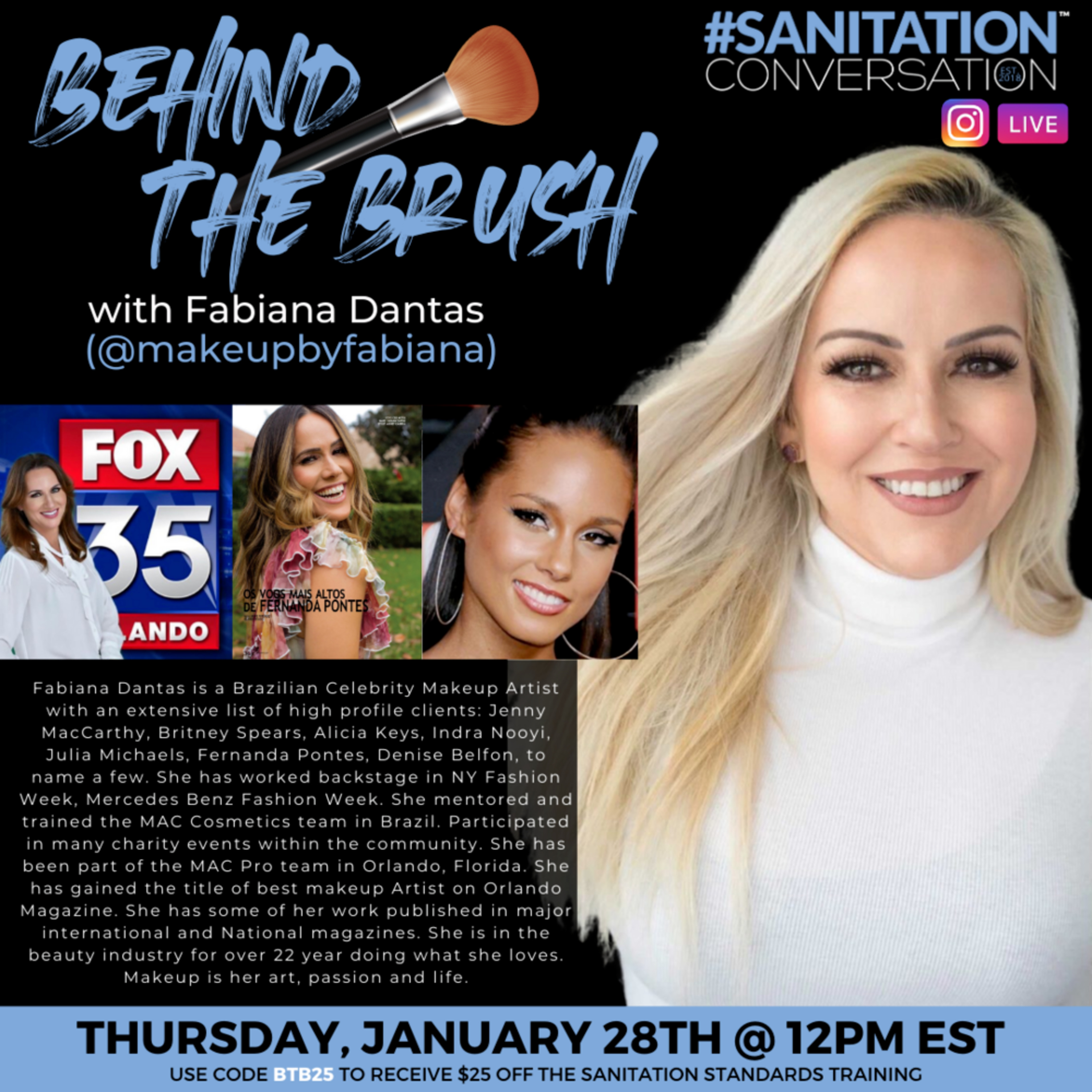 This week we will be chatting with Fabiana Dantas, @makeupbyfabiana a Brazilian Celebrity Makeup Artist with an extensive list of high profile clients: Jenny McCarthy, Britney Spears, Alicia Keys, Indra Nooyi, Julia Michaels, Fernanda Pontes, Denise Belfon, to name a few.