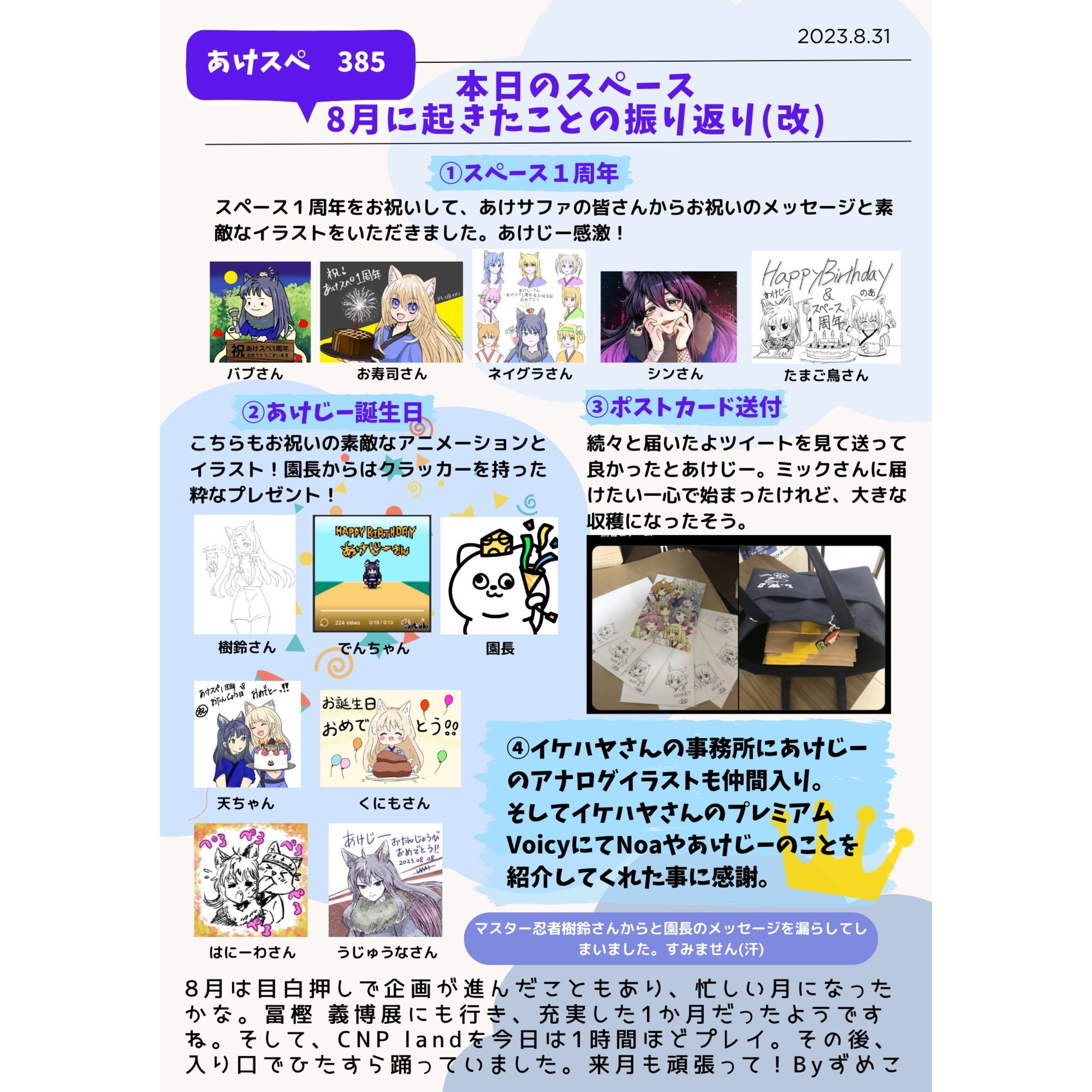 1. あけスペ 8 月の振り返り