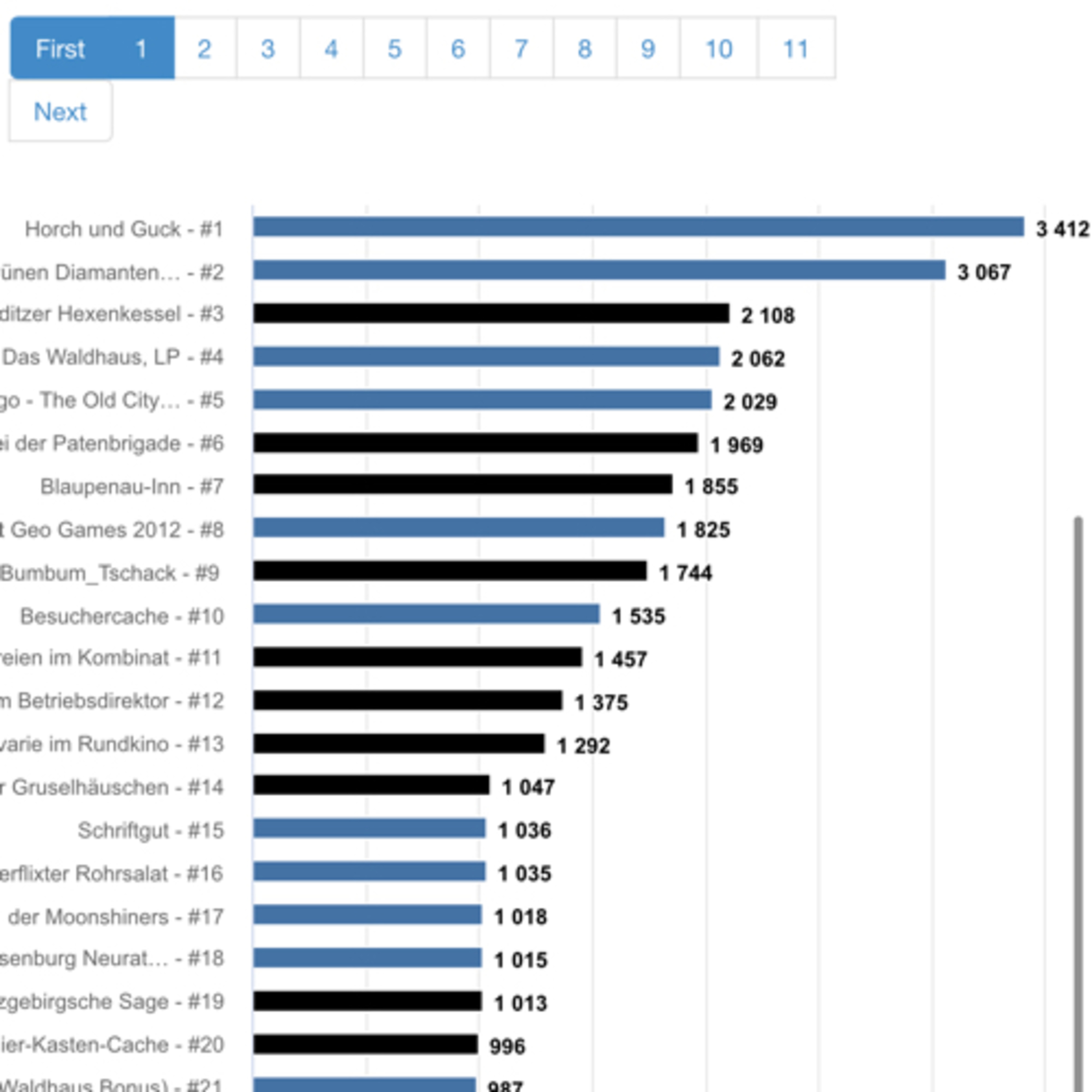 29.922 Geocaches gibt es in Sachsen, davon 15.223 Tradis, 9.515 Mysterys, 4.051 Multis, 305 Earthcaches, 352 Letterboxen, 401 Whereigos, 4 Webcam Caches und 68 Virtuals. Der Cache mit den meisten Favoritenpunkten ist der Tradi Horch und Guck http://www.geocaching.com/geocache/GC3B7V9