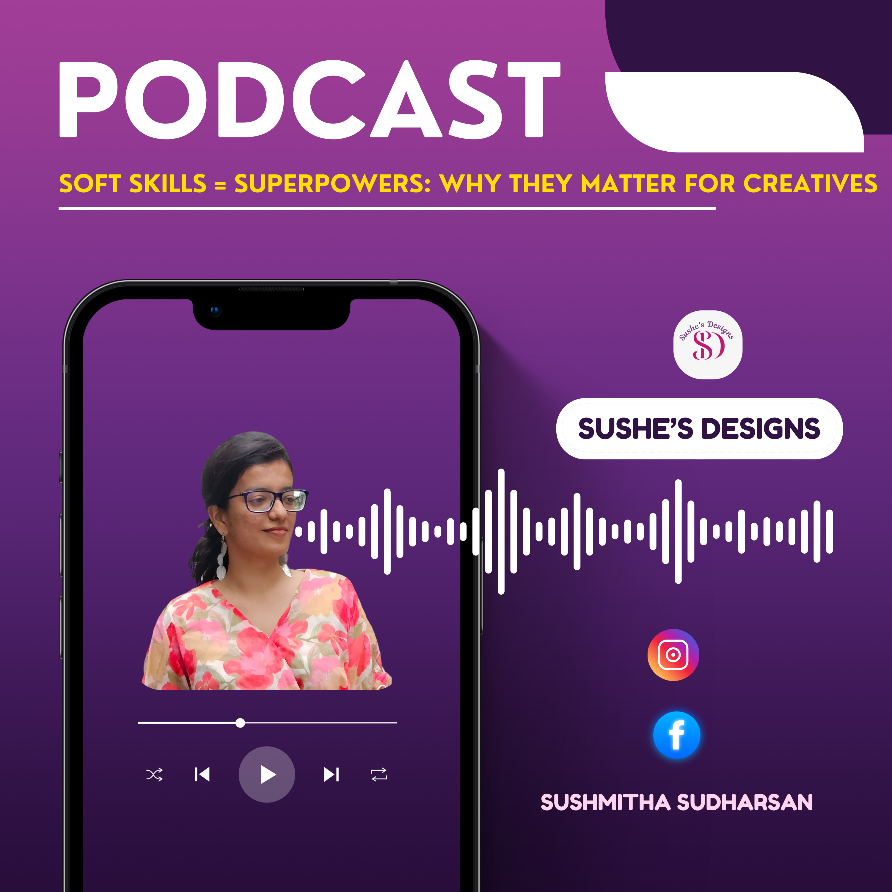 In this episode of Susheβs Designs Podcast, host Sushmitha explores why creatives need more than talent to thrive. Whether youβre a designer, artist, freelancer, or handmade entrepreneur, your creativity shines brightest when paired with the right soft skills.