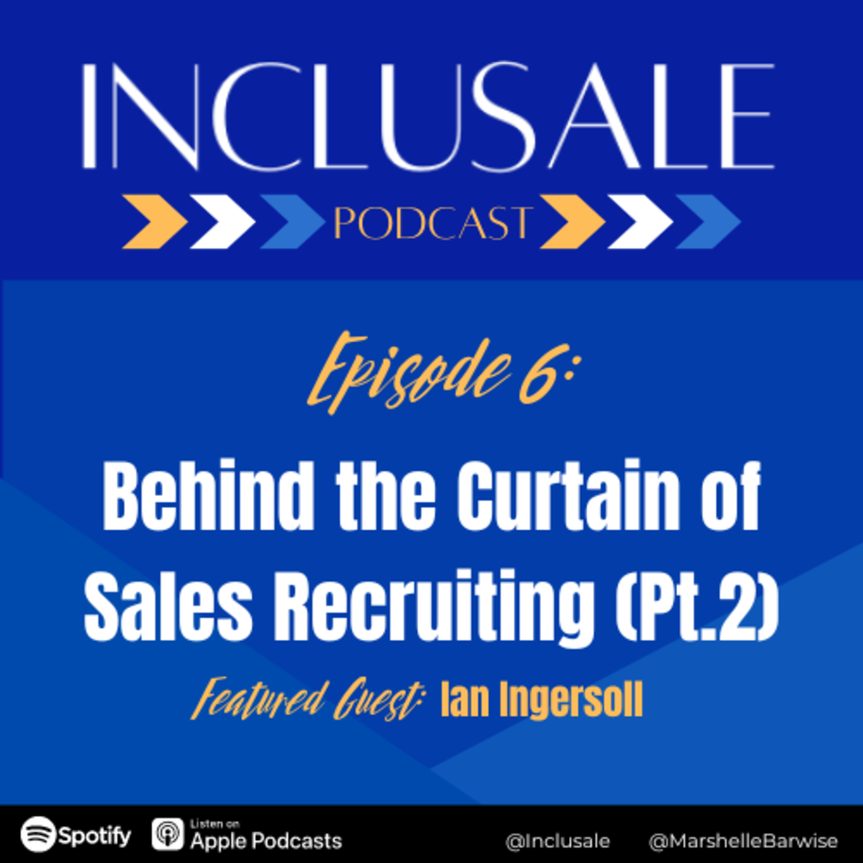 Welcome to Inclusale Podcast, the place to learn winning sales strategies and hear action-driven conversations on creating more diversity, equity, and inclusion in sales. Tune in every Tuesday at 5 AM EST with host Marshelle Barwise, and hit the subscribe or follow button to catch every episode! In EP#6, Featured Guest Ian Ingersoll is back with Part II to share more recruiting tips to help you set yourself apart in an excellent way to land your dream opportunity & we get into a bit of diversity, equity, and inclusion.