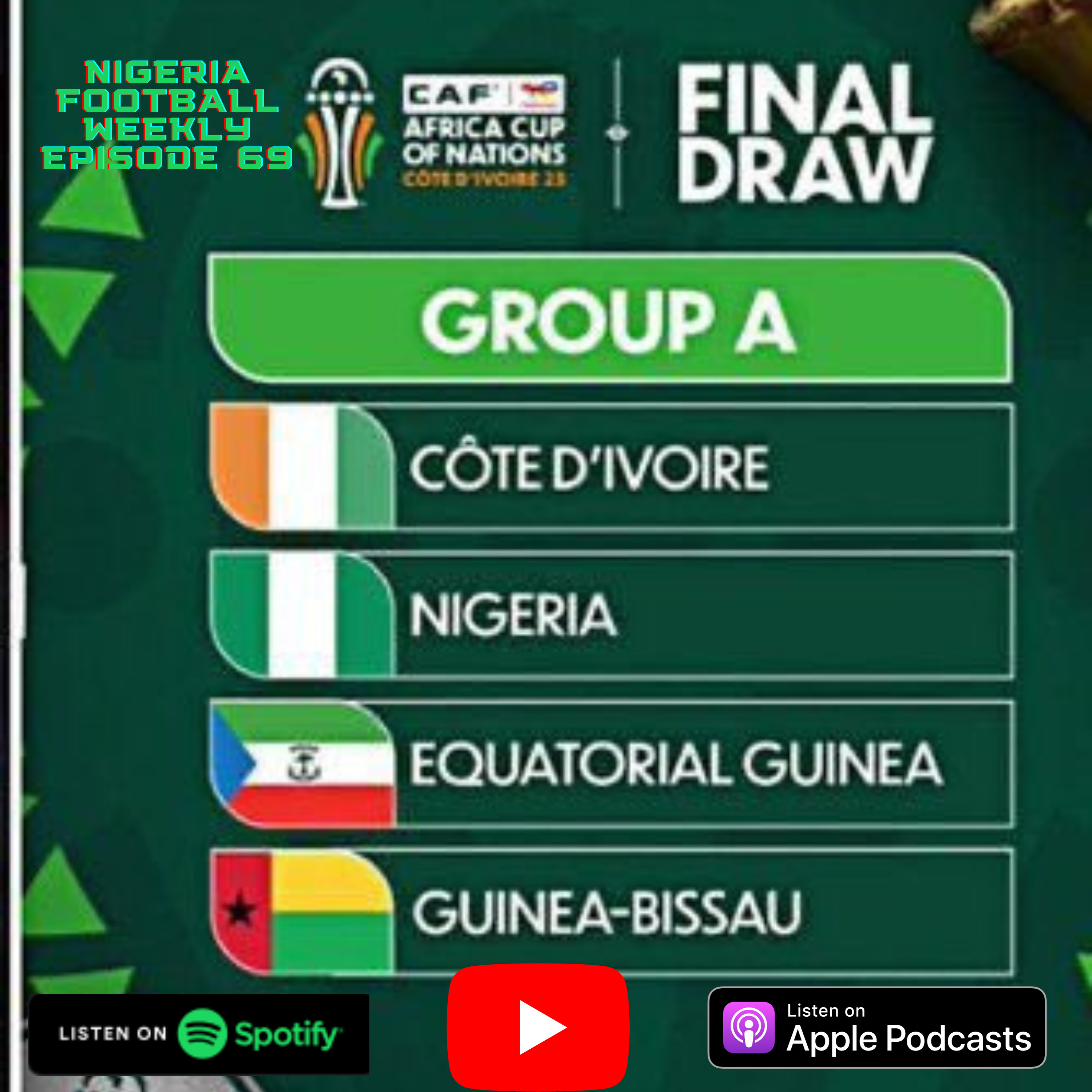 In this episode, I previewed the upcoming Africa Cup Of Nations, which gets underway in Ivory Coast on Saturday with Nigeria drawn in Group A alongside the hosts Ivory Coast, Equatorial Guinea & Guinea-Bissau. Our first game takes place on Sunday January 14th against Equatorial Guinea