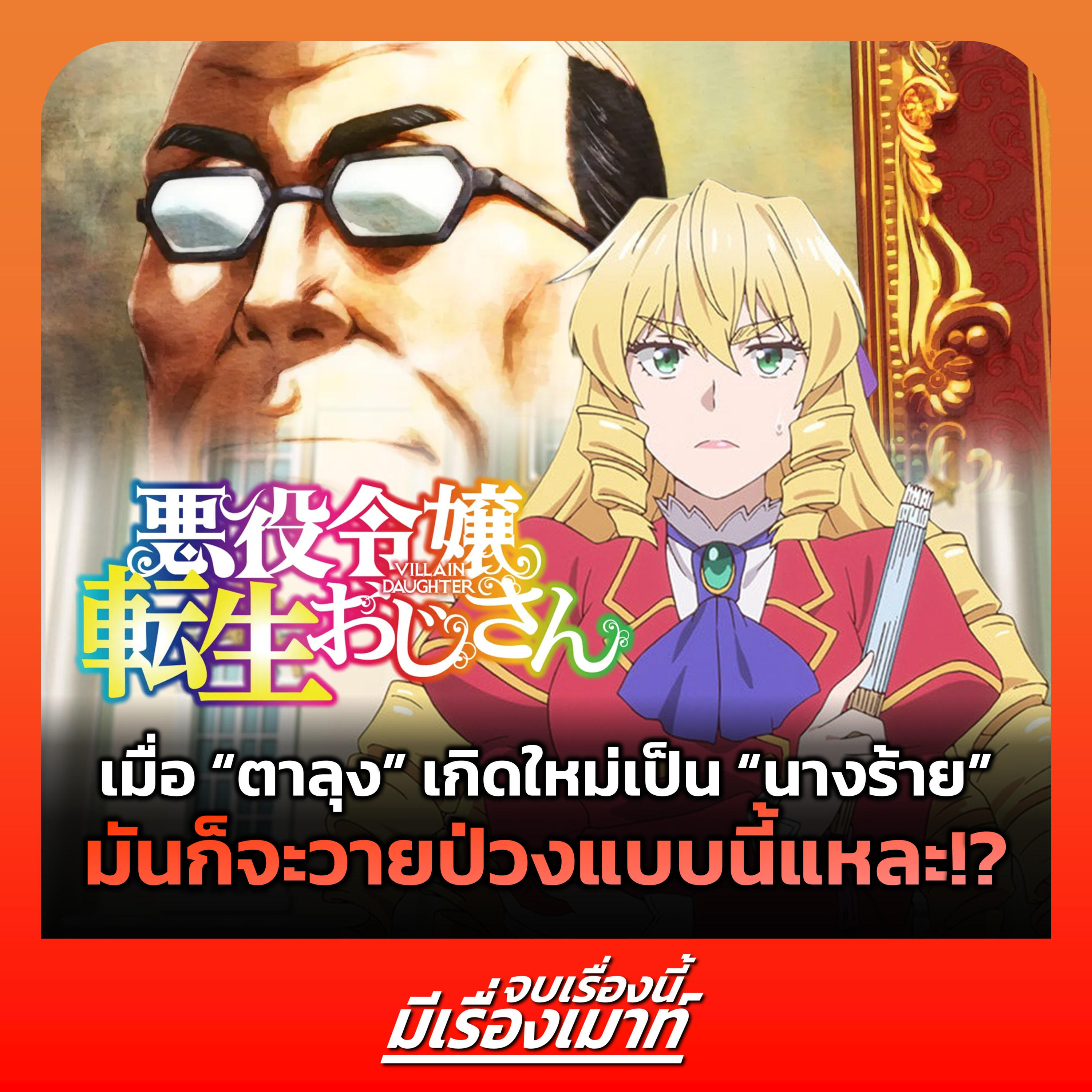 "จบเรื่องนี้ มีเรื่องเมาท์" อีพีนี้ "ฟลุ๊ค - แซน" ชวนมารีวิว เมาท์มอย และพูดคุยเกี่ยวกับอนิเมะ "เมื่อตาลุงเกิดใหม่เป็นนางร้ายที่ต่างโลก" เรื่องราวของลุงโอตาคุวัยเลข 5 ที่จับพลัดจับผลูมาเป็นนางร้ายอยู่ในเกมโปรดของลูกสาว แต่หลาย ๆ อย่างที่ทำนั้นดีจนน่าใจหาย จนแทบจะไม่เหลือคราบนางร้ายเลย!?