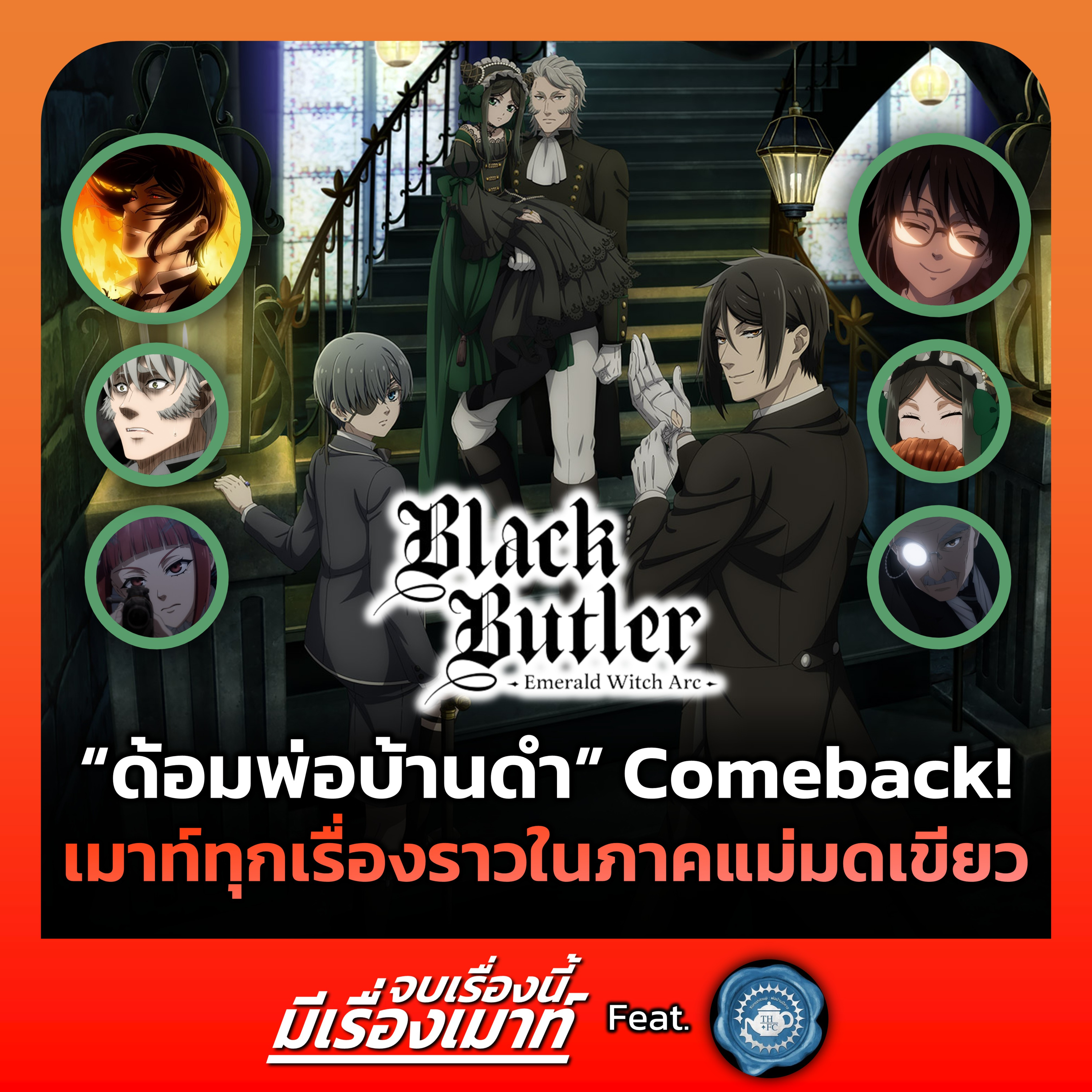 "จบเรื่องนี้ มีเรื่องเมาท์" อีพีนี้ พบกับการกลับมาของสองแอดมิน "ลิซ - พี" จากเพจ KuroshitsujiTH ที่ครั้งนี้ขอมาตั้งวงรีวิวและขยี้ "Black Butler: Emerald Witch Arc (คน[ลึก]ไขปริศนา[ลับ] ภาคแม่มดเขียว)" มีอะไรที่ชอบ มีอะไรที่น่าเมาท์มอยภายใต้ป่าแม่มดกันบ้าง มาติดตามกัน!!