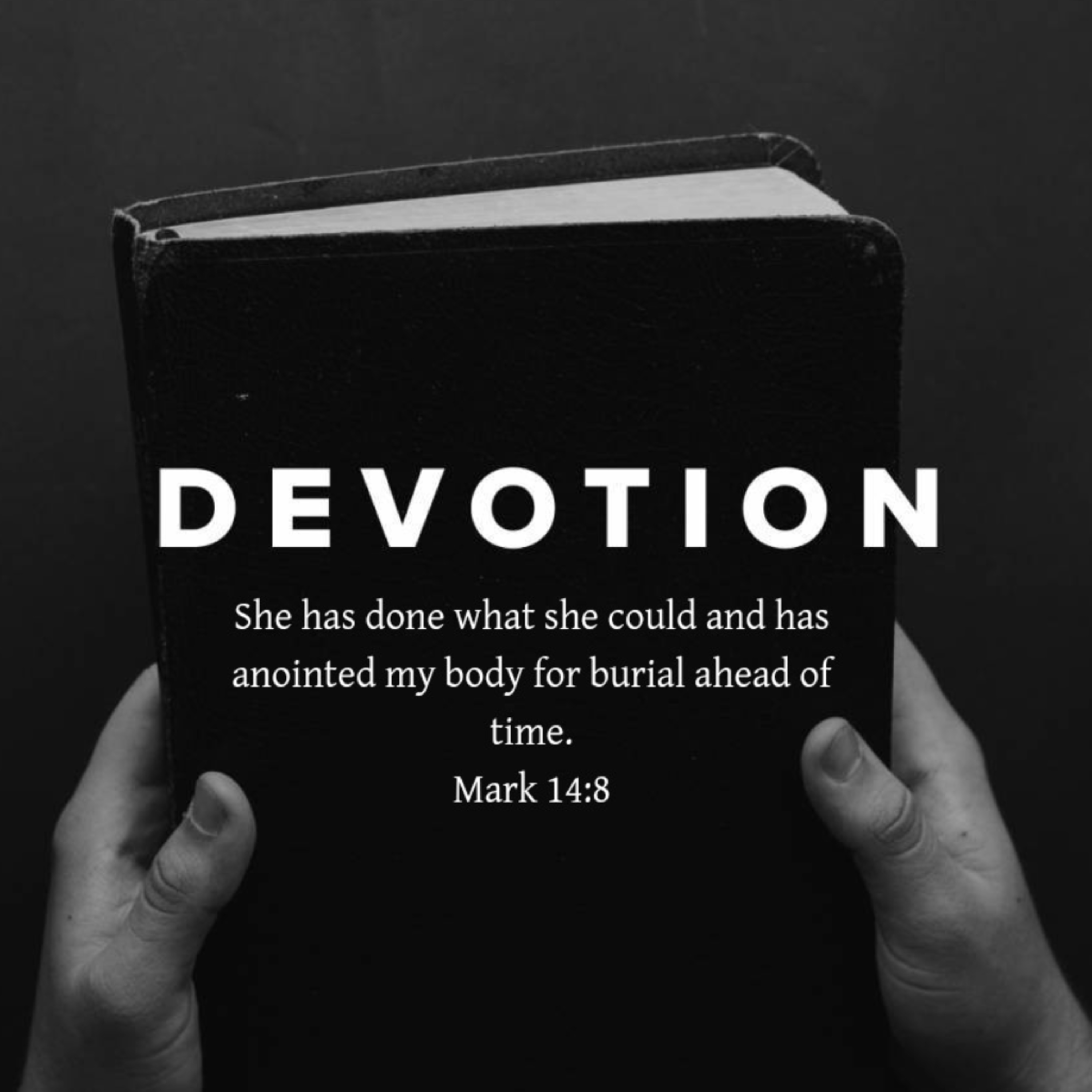 Mark 14:8 She has done what she could. She has come beforehand to anoint My body for burial.