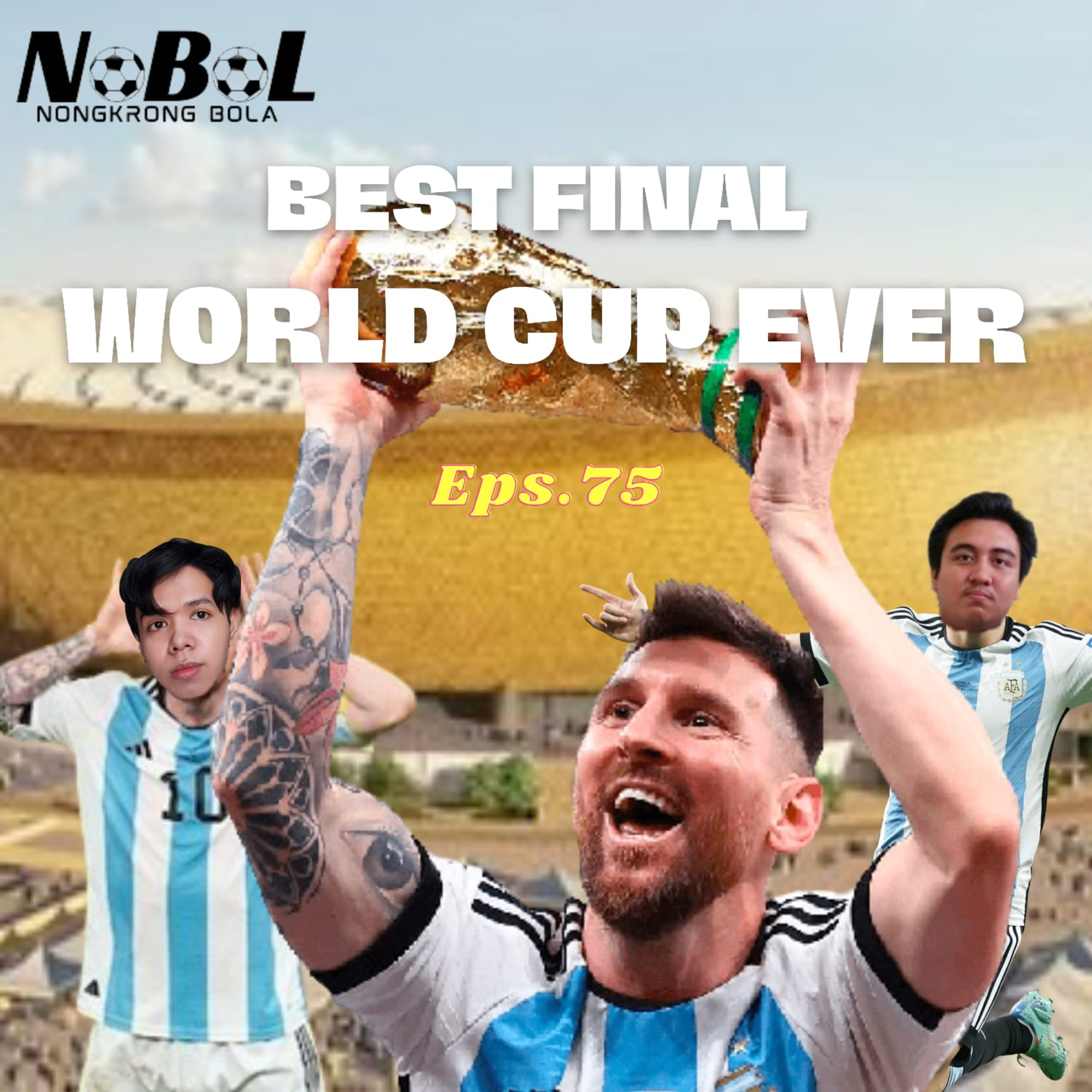 Episode kali ini membahas final piala dunia terbaik yang dimenangkan oleh Argentina. dua gol Lionel Messi, satu gol Angel Di Maria dari Argentina dan Trigol Kylian Mbappe membuktikan betapa serunya laga final piala dunia tersebut. Kemenangan Final tersebut membuktikan bahwa Lionel Messi secara resmi menamatkan sepakbola walaupun belum tentu pensiun timnas dan juga Greatest Of All Time-nya Football