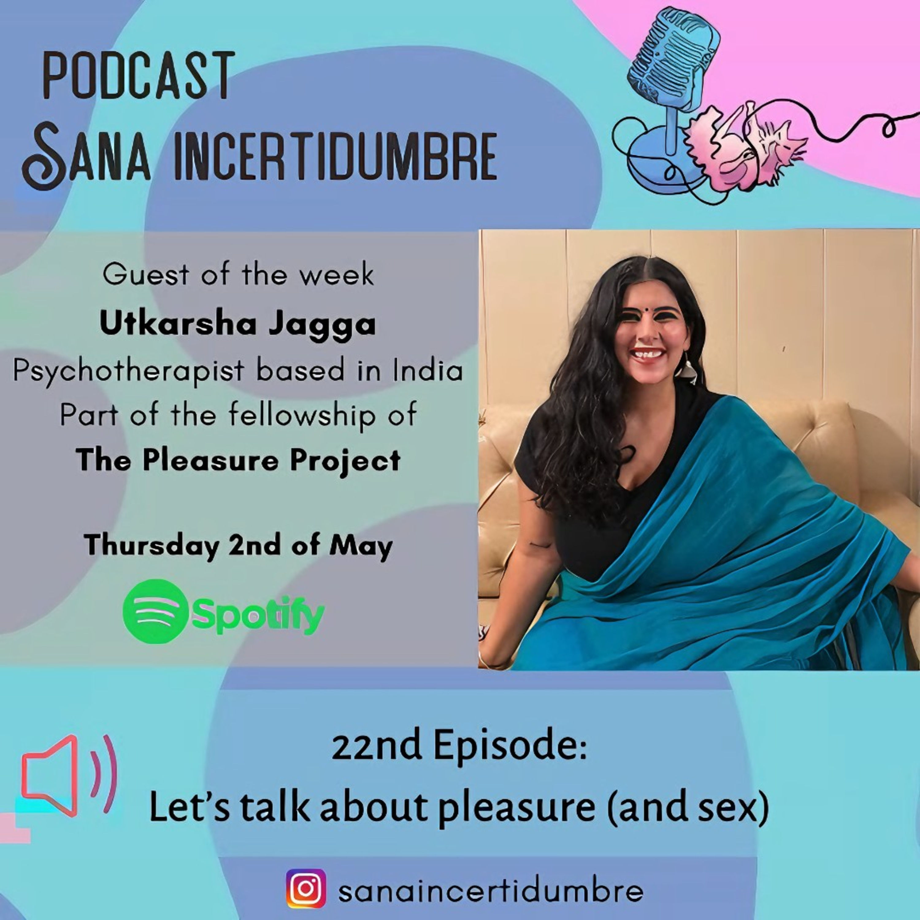 Today I will talk to Utkarsha Jagga, psychotherapist, from India, and part of the Pleasure Project Fellowship.