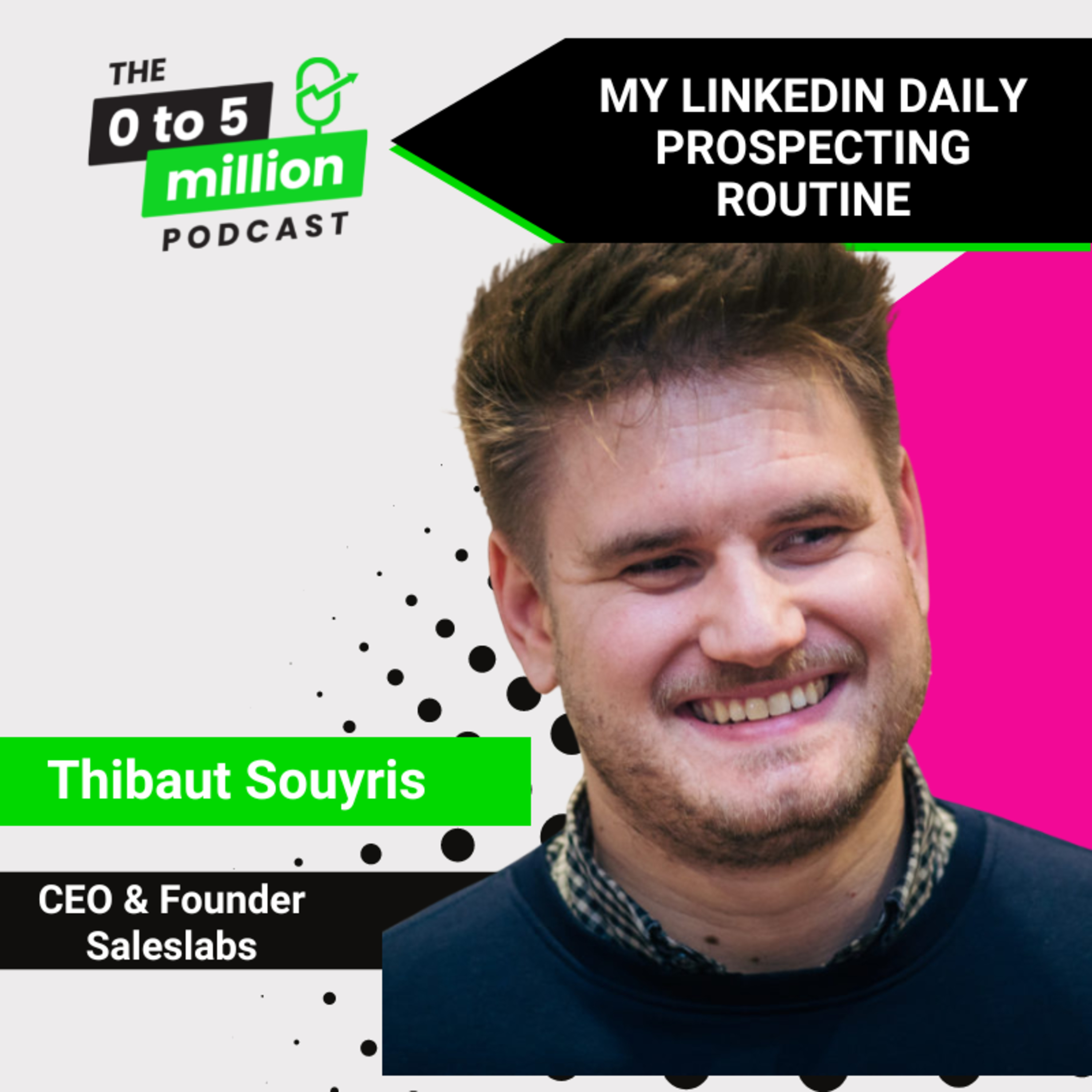 In this episode of the 0 to 5 Million podcast, we're delving into Thibaut Souyris' secrets on becoming a master at LinkedIn prospecting. Regardless of your current skill level or experience in sales, these tried and tested tips will give you everything needed to find relevant triggers to start a conversation, build a simple 6-step sequence, and create a simple prospecting routine. So don't miss out - tune in to learn how to prospect on LinkedIn more efficiently than ever before!