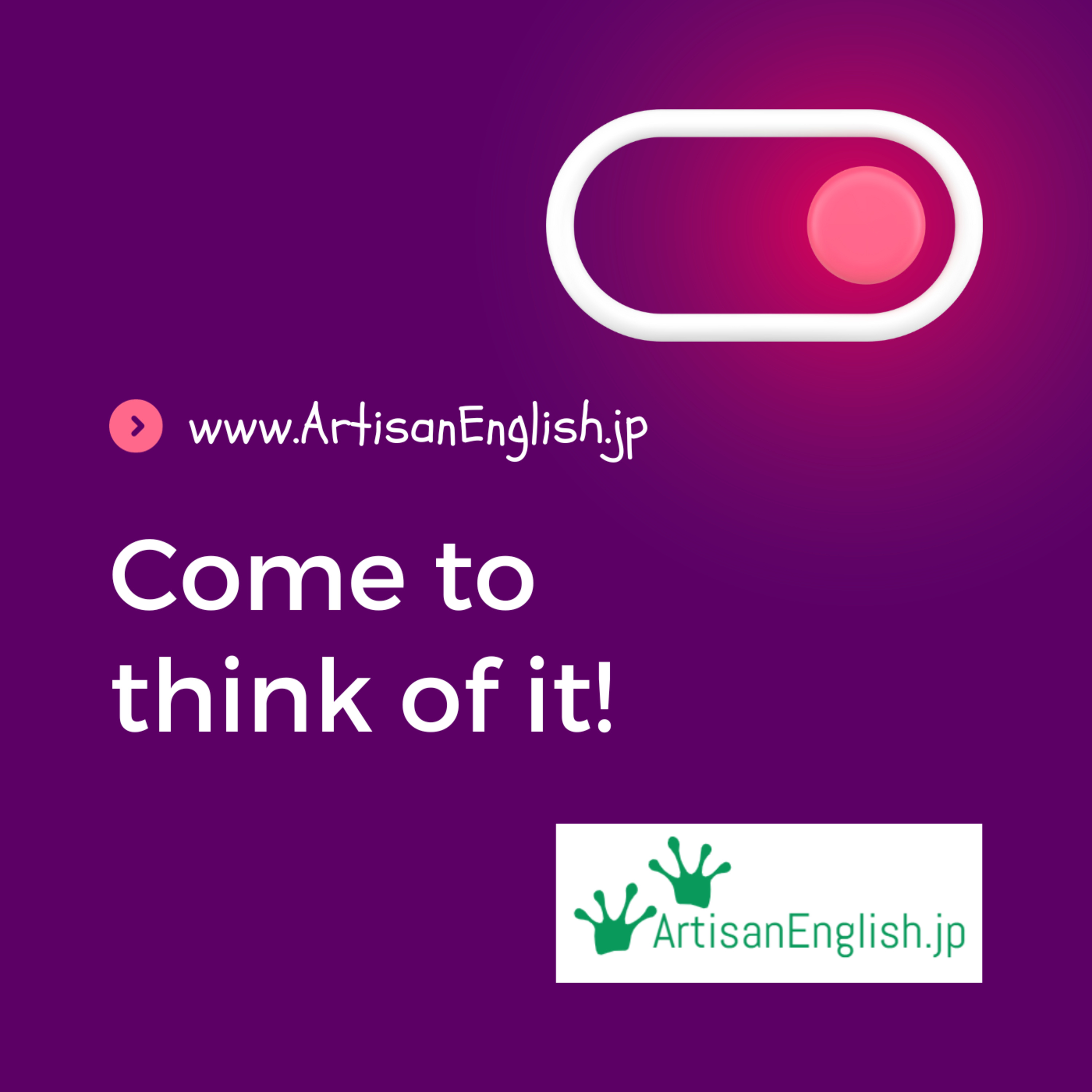 Come to think of it: Using come to think of it in a conversation indicates we have had a new thought or realization about something we hadn't considered earlier. https://links.artisanenglish.jp/ComeToThinkOfIt