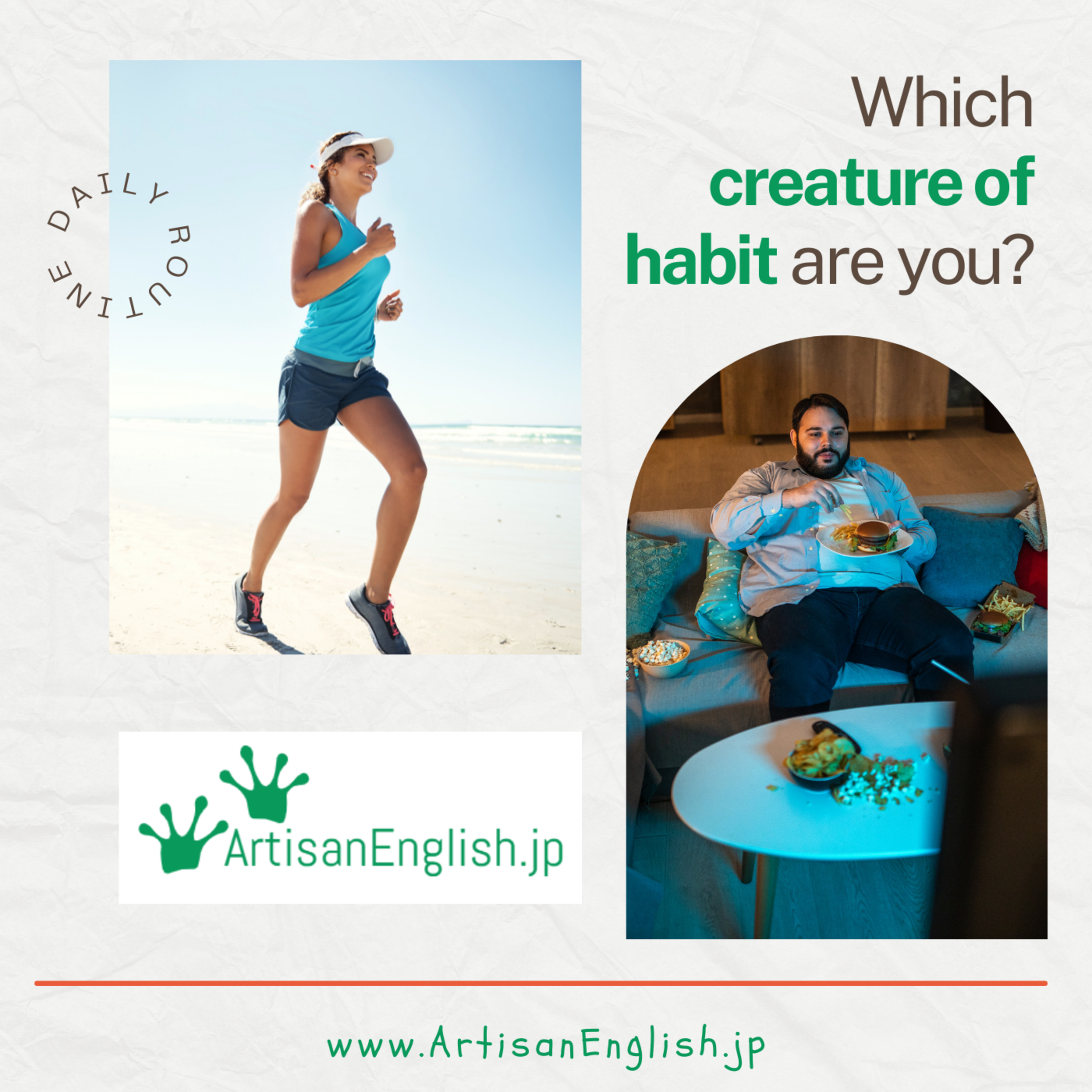 Creature of habit: someone who always does the same thing in the same way. We are all creatures of habit because we all follow patterns. https://links.artisanenglish.jp/CreatureOfHabit