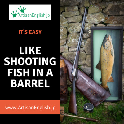 Like shooting fish in a barrel: Shooting fish in a barrel is used to say that something is very easy. Yes, I hear you ask why anyone would want to shoot fish in a barrel. https://links.artisanenglish.jp/LikeShootingFishInABarrel