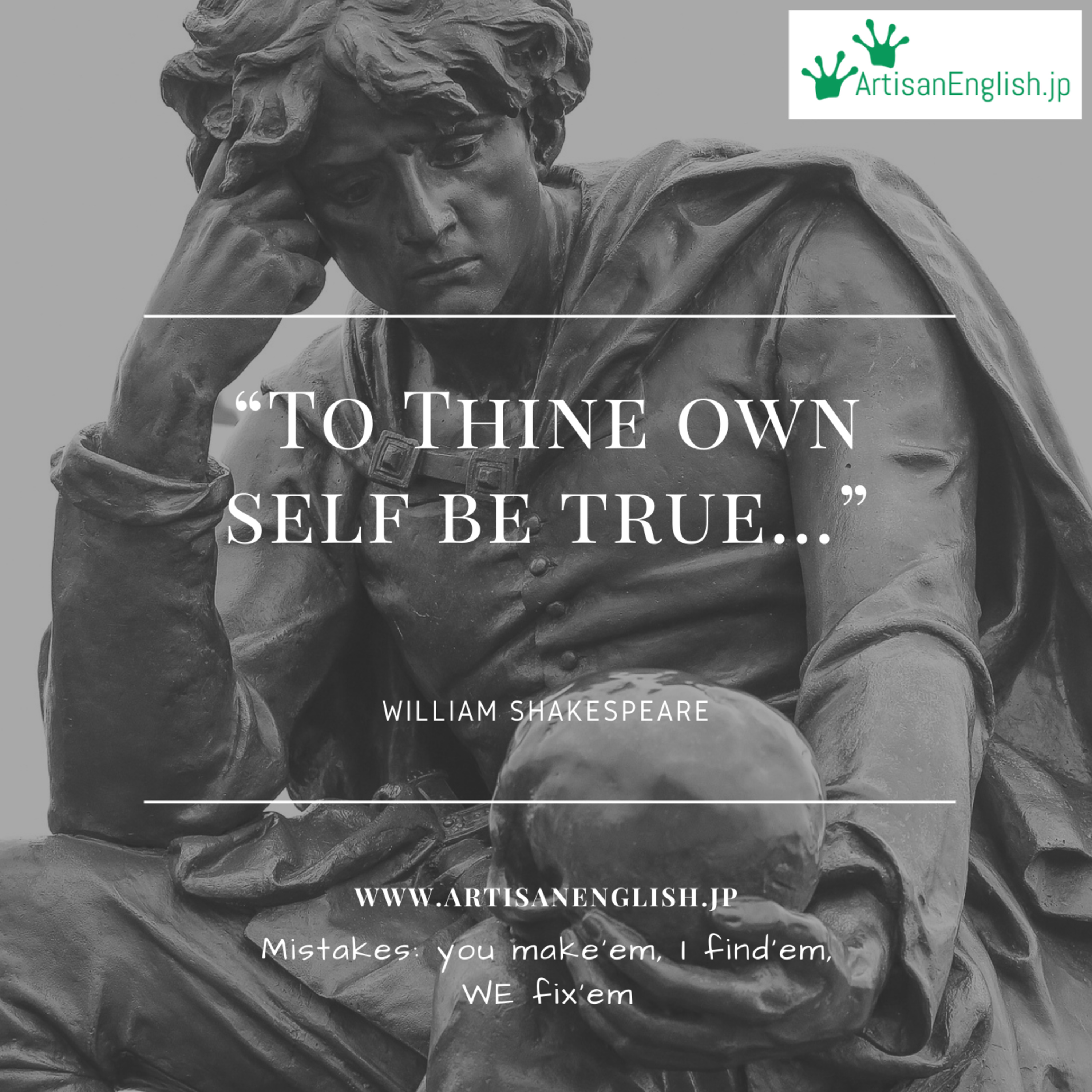 Today’s episode is for September 10, 2020. Our phrase for today is 'to thine own self be true'. To thine own self be true is a quote from Shakespeare's play, Hamlet. It means be honest with yourself, and things will work out for the best. You can read along as you listen by following this link: http://bit.ly/aeToThineOwnSelfBeTrue