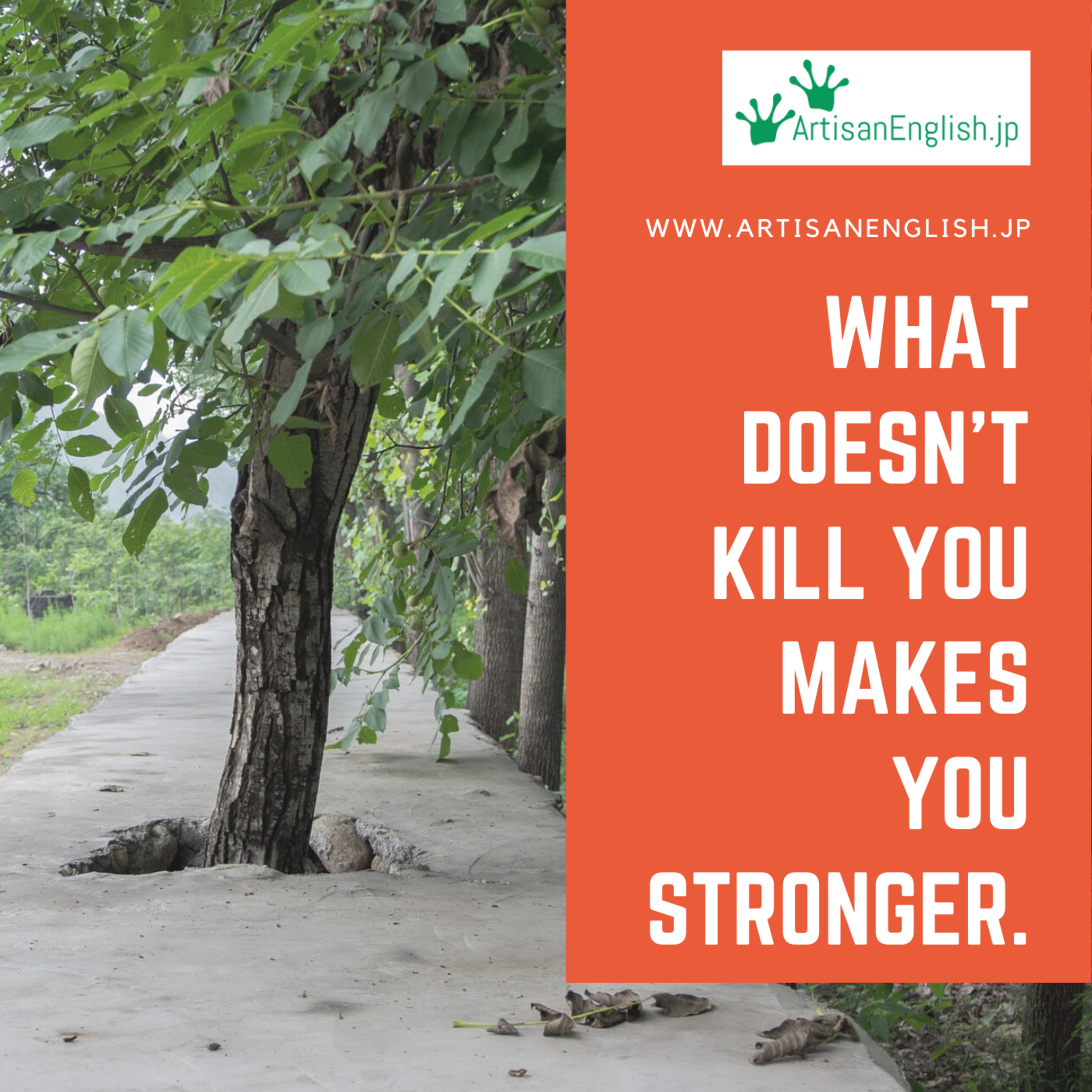Hey there! Thanks for visiting. Today’s episode is for Friday, October 16, 2020. Our phrase today is ‘what doesn't kill you, makes you stronger.’ What doesn't kill you makes you stronger means you should embrace hardship and difficulty because it strengthens you for future challenges. You can read along as you listen by clicking HERE or by copying and pasting this link: https://bit.ly/aeWhatDoesntKillYou