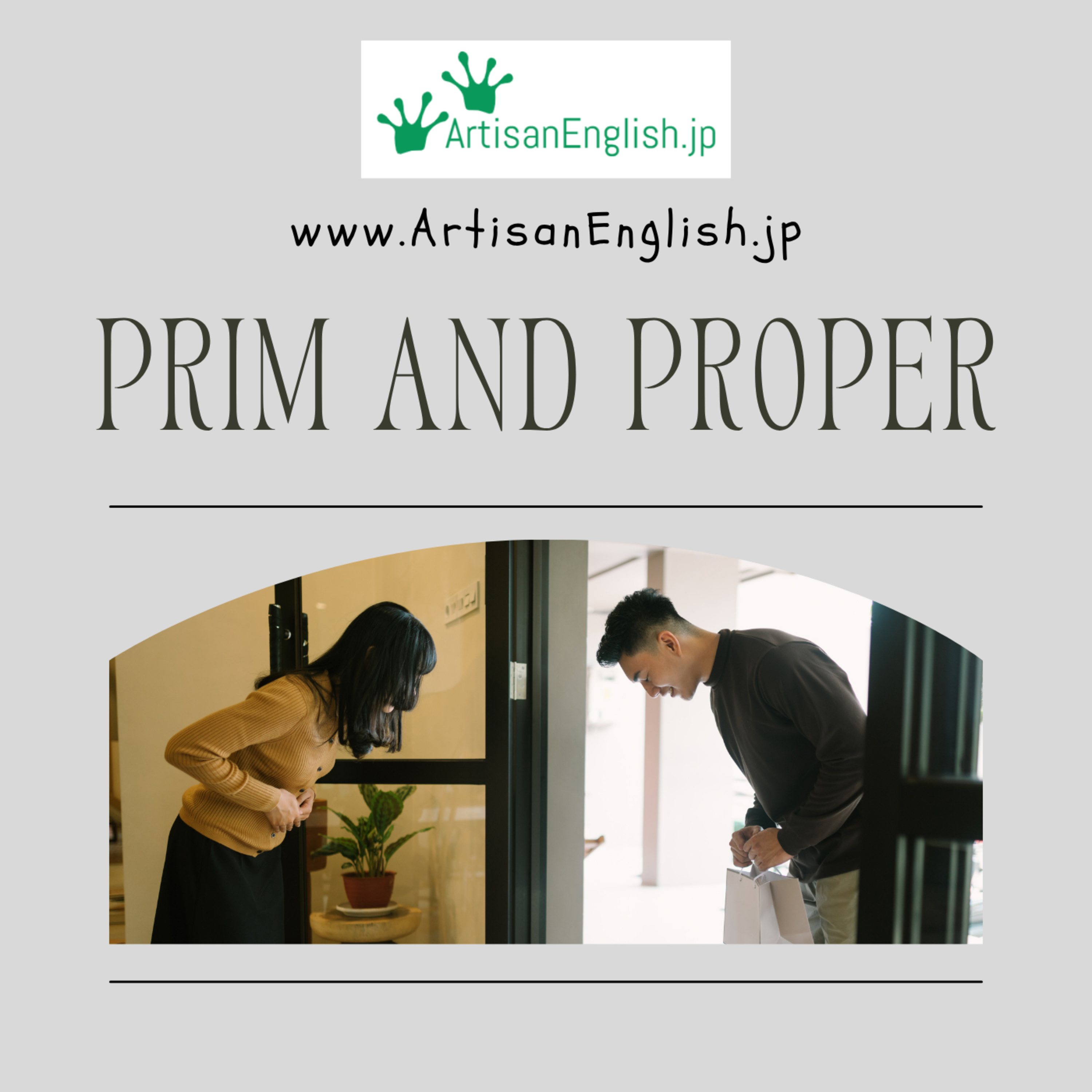 Prim and proper: prim and proper describes a person who is very concerned with looking neat and following rules. They do not like mess or bad manners. https://links.artisanenglish.jp/PrimAndProper