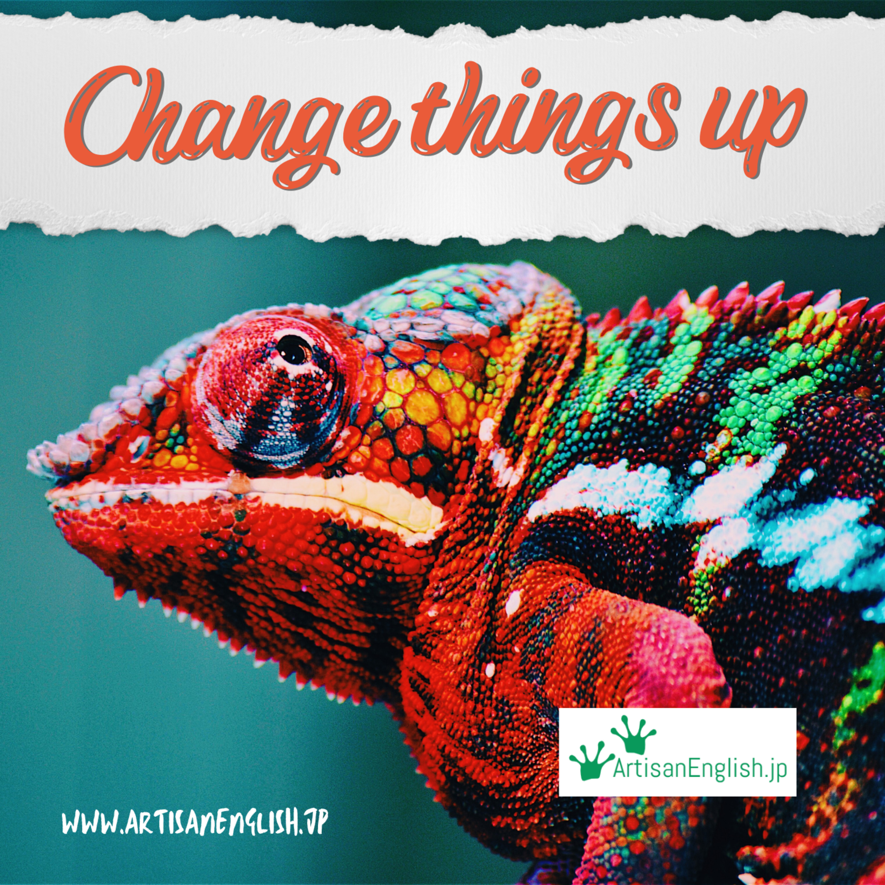 Change things up: When you change things up, you change yourself, your habits or something else to make an improvement. A positive outcome is desired. https://links.artisanenglish.jp/ChangeThingsUp