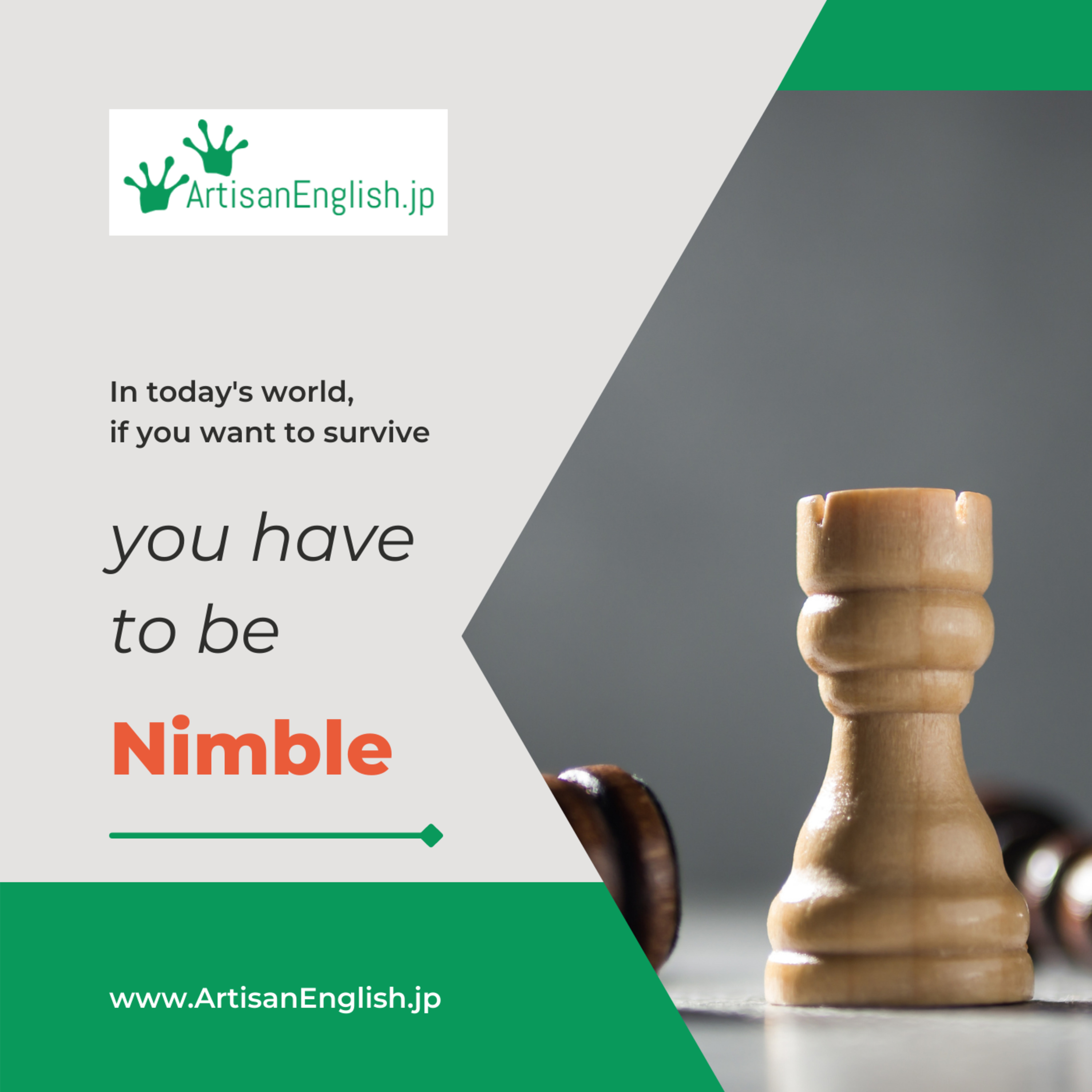 Today’s episode is for Thursday, April 29, 2021. Our Word of the Day is ‘nimble.’ To be nimble means that your actions are quick and exact. Those who are nimble are also agile. They move very smoothly and quickly. You can read along as you listen by clicking HERE or by copying and pasting this link into your preferred browser: https://links.artisanenglish.jp/Nimble