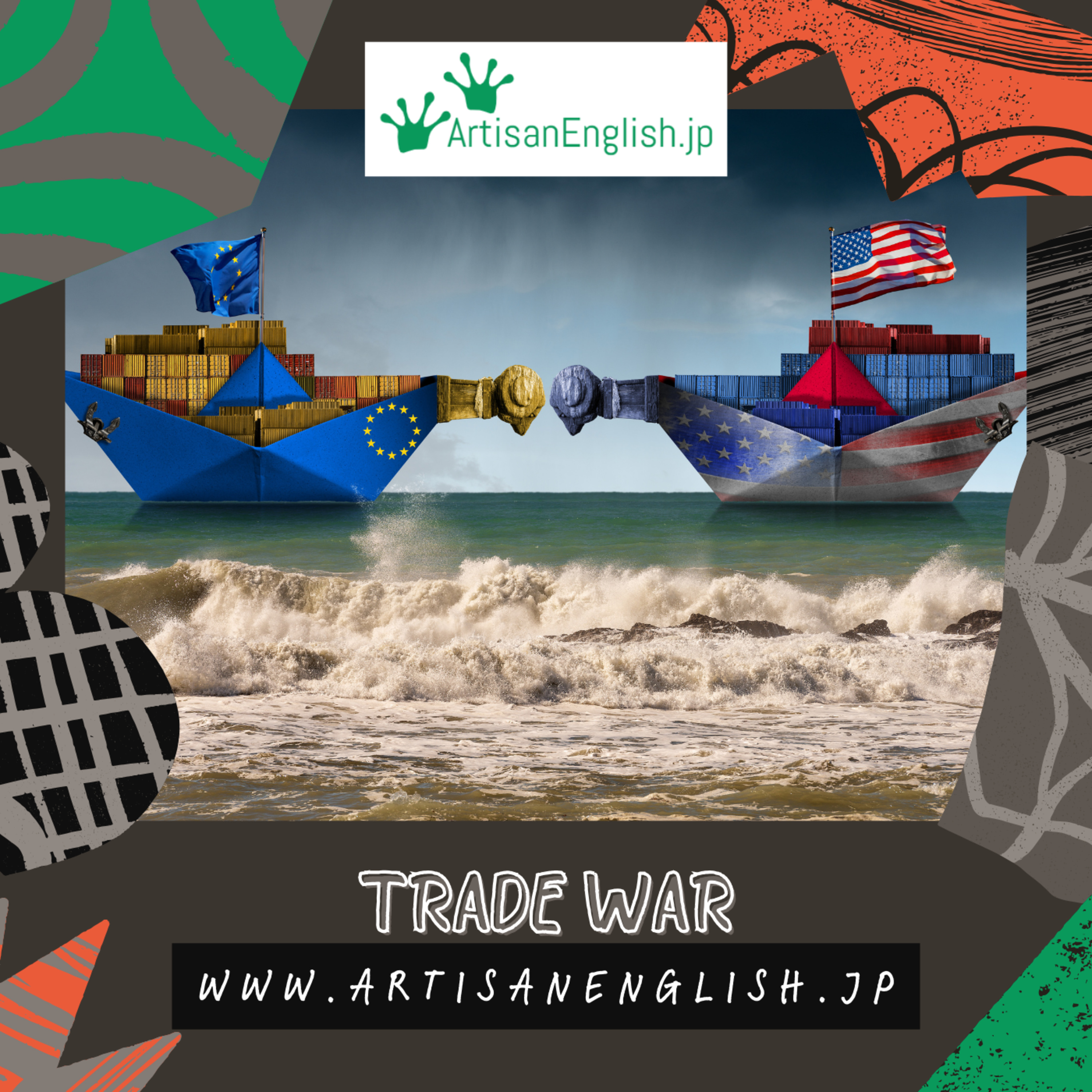 Trade war: a trade war is a situation where countries impose tariffs or other trade barriers on each other to protect their industries or to respond to trade practices they see as unfair. https://links.artisanenglish.jp/TradeWar