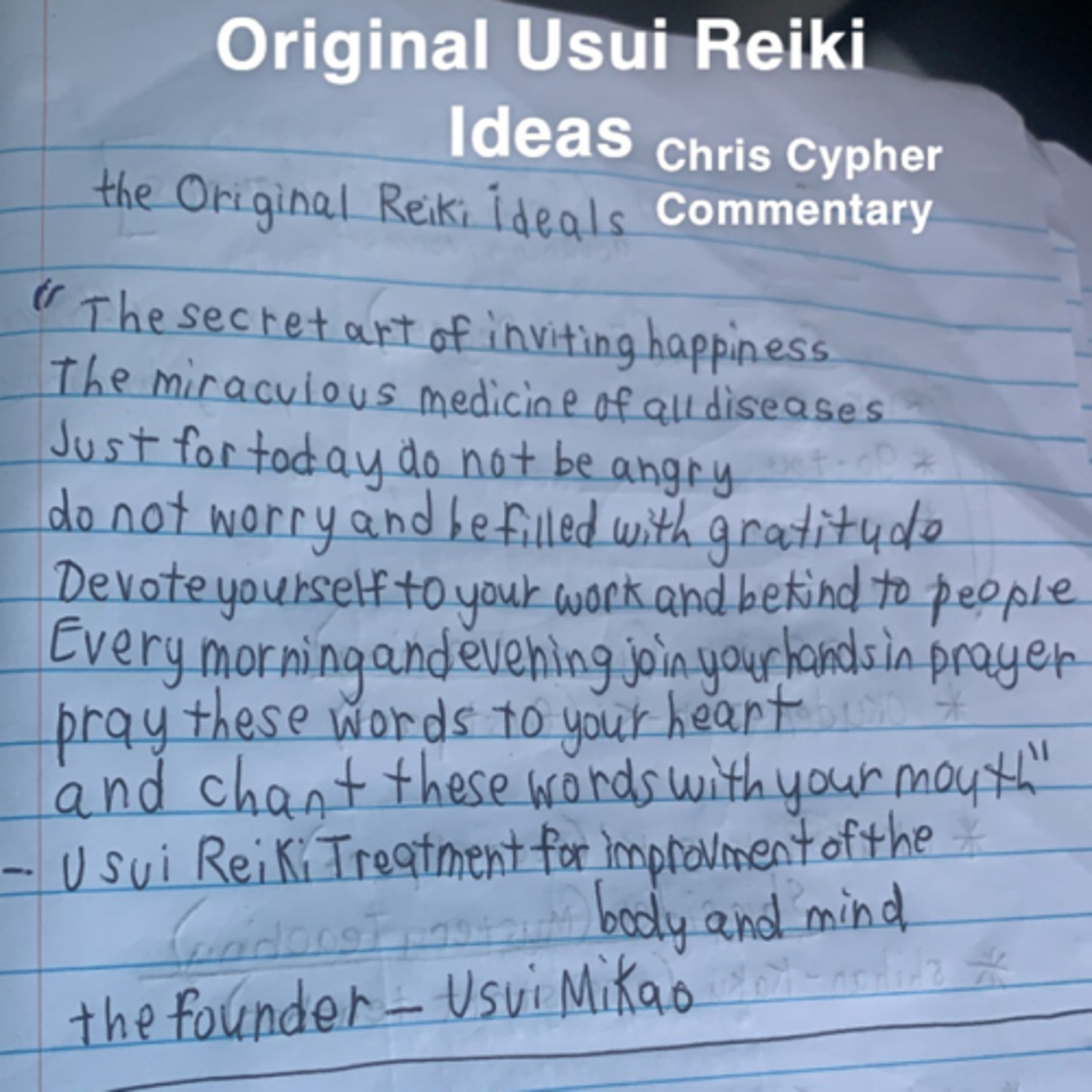 “The Secret art of inviting happiness. The miraculous medicine if all diseases. Just for today do not worry and be filled with gratitude. Devote yourself to your work and be kind to people.” -Usui Mikao