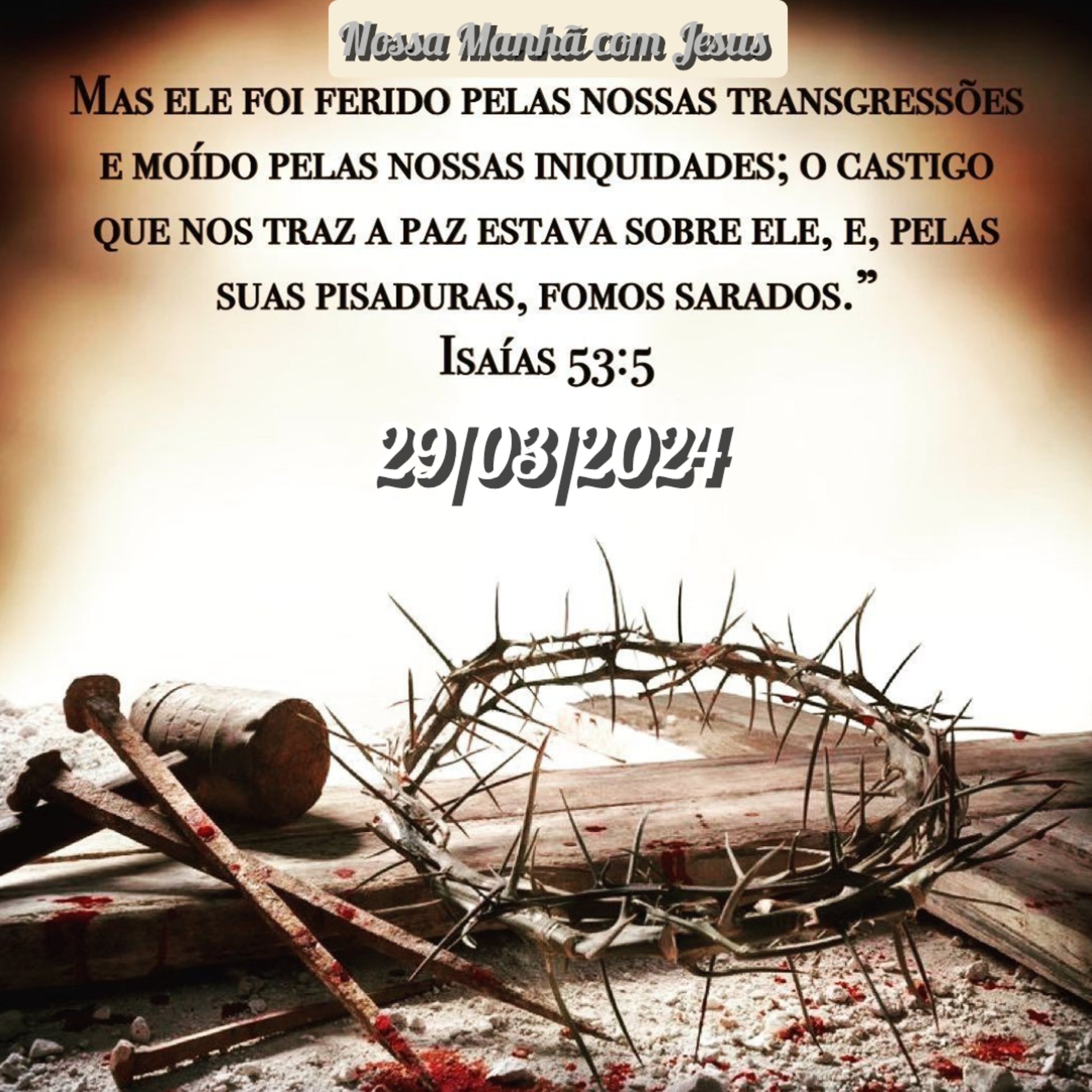 Mas Ele foi ferido pelas nossas transgressões e moído pelas nossas iniquidades, o castigo que nos traz a paz estava sobre Ele e pelas suas pisaduras fomos sarados.